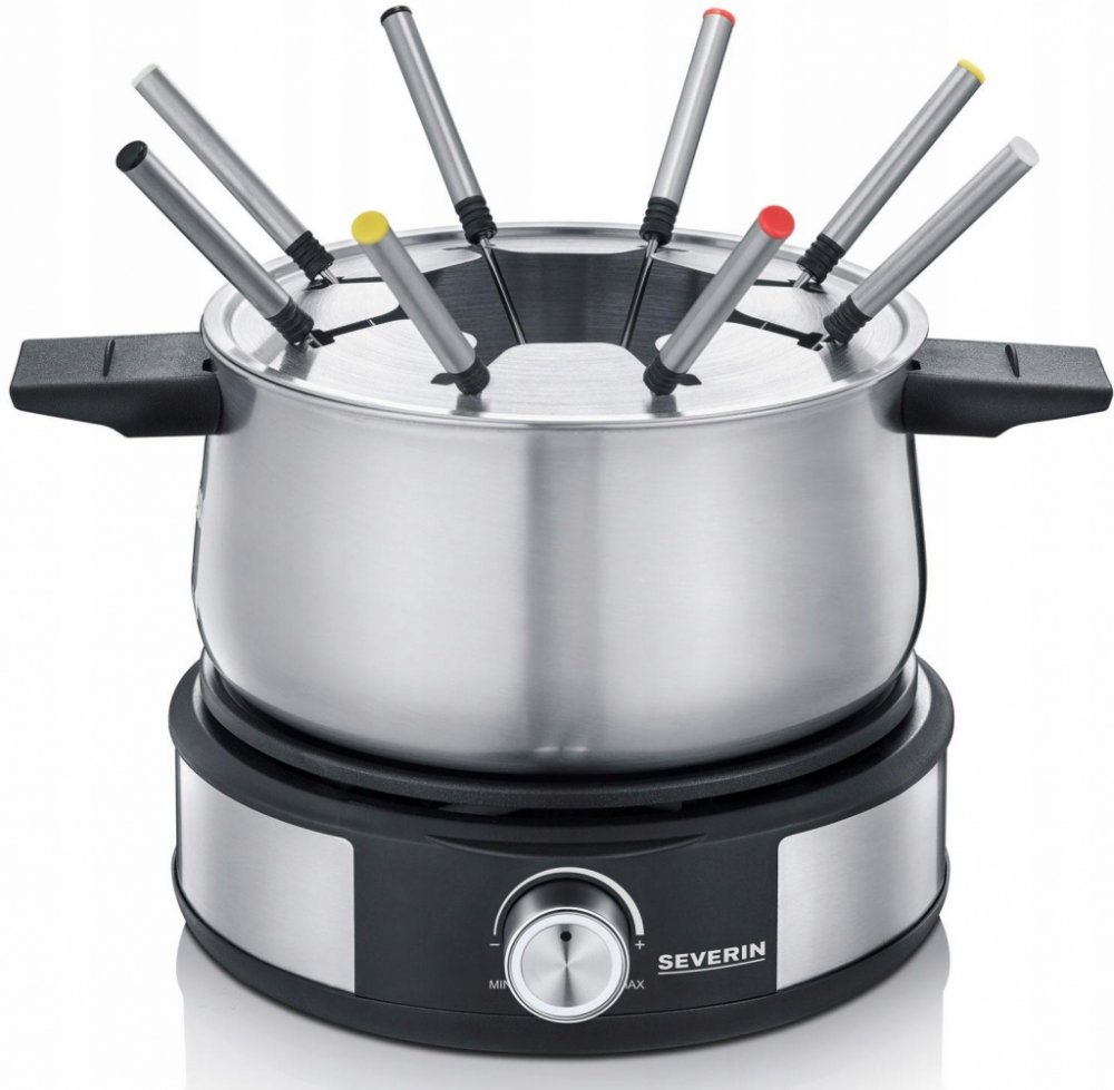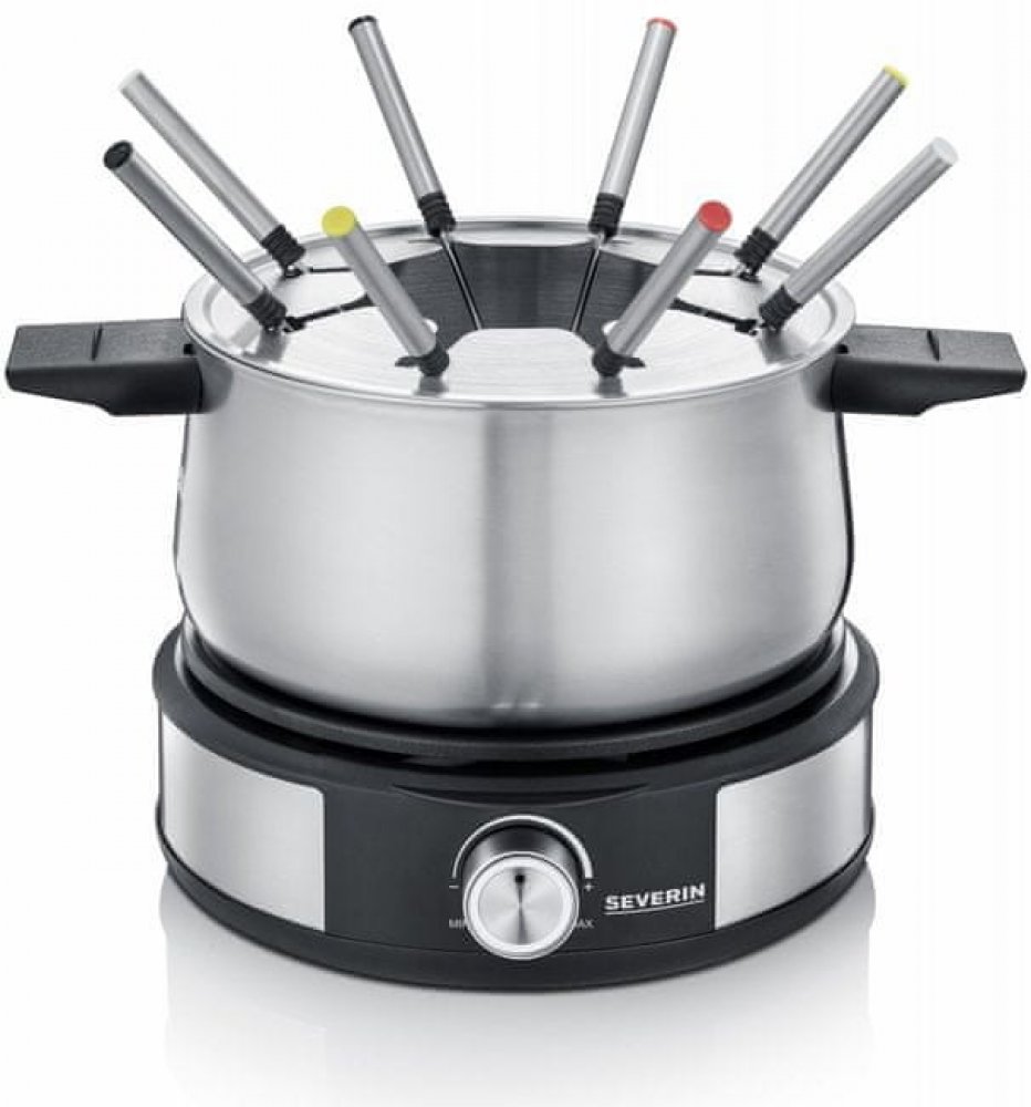 Vlastnosti:- vhodný pro různé typy fondue- přídavný talíř na palačinky- vyjímatelný hrnec z nerezové oceli s tlačítkem min./max.- plynulý termostat na zahřívání a uchování teploty- odnímatelný ochranný kryt s možností zamykání- vhodné do myčky- včetně 8 barevných vidliček pro lepší rozlišení- délka kabelu 1 m- výkon max. 1500 W- barva černá- materiál plast / nerezová ocel- snadné čištění- plynulý ...