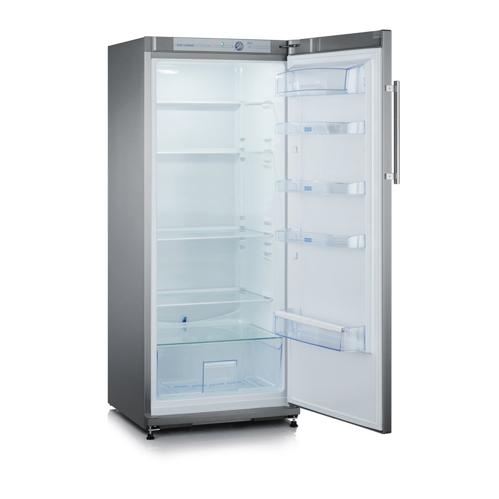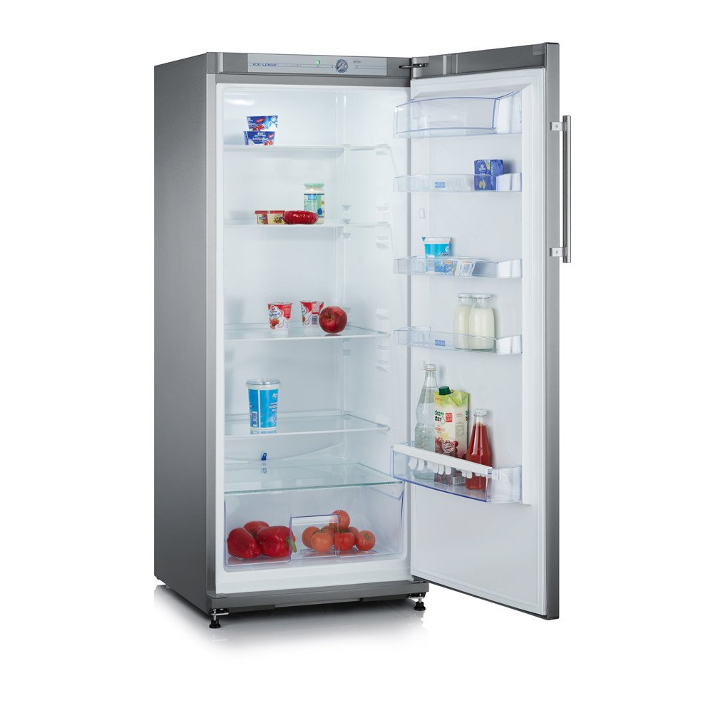 Volně stojící chladnička KS 9788 značky Severin.Vlastnosti:- moderní LED osvětlení vnitřního prostoru- 5 odkládacích ploch z bezpečnostního skla, z toho 4 výškově seřiditelné- velká přihrádka pro udržení čerstvosti ovoce a zeleniny- přihrádka pro láhve (také pro láhve 1,5 l) a 3 univerzální přihrádky ve dveřích- užitečný objem: 267 l- třída energetické účinnosti A++, spotřeba: 104 kWh/rok- klimatická třída: N-T (16–43 °C)- regulátor teploty- automatický systém odmrazování- přihrádka na máslo/sýr s víkem- 2 výškově přestavitelné nohy vpředu, 2 přepravní kolečka vzadu, stěnový distanční držák- rozměry přístroje (v x š x h): 145 x 60 x 65 cm- hloubka při otevřených dveřích: 120,5 cm- otevírání dveří vpravo, zaměnitelné- hluk: 41 dB(A)- kontrola připojení k síti- příslušenství: úložná přihrádka pro 6 vajec- barva: ušlechtilá ocel