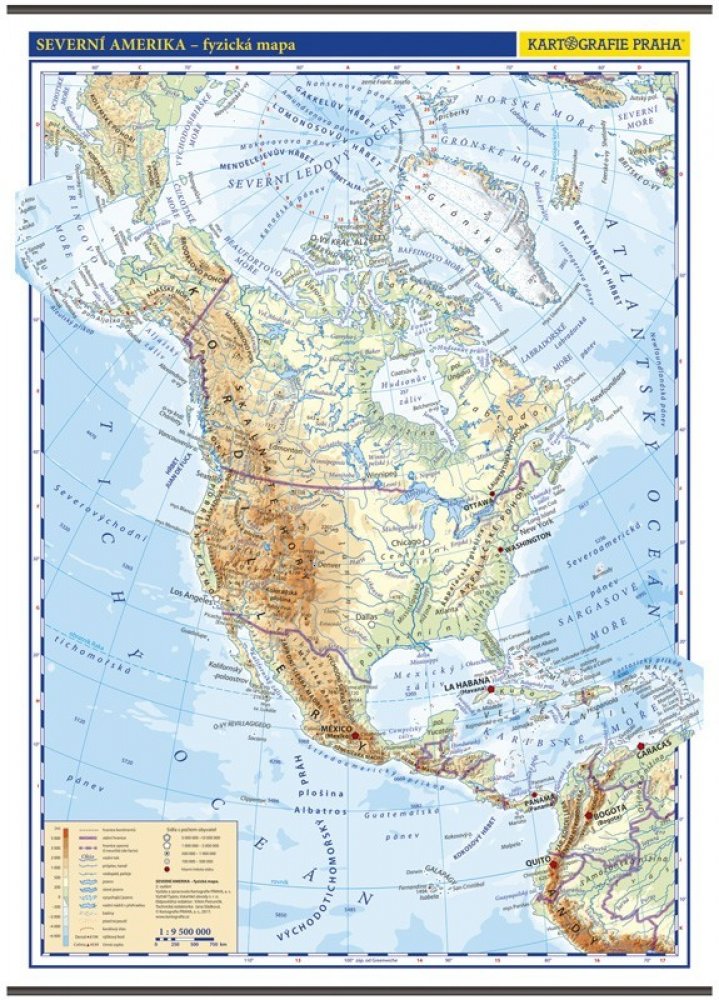 Nástěnná mapa v měřítku 1 : 9 500 000 má tradiční fyzický obsah. V ceně je zahrnuto také 20 separátních map v měřítku 1 : 30 000 000 pro práci žáků v lavici. Na rubové straně separátu je obrysová mapa Severní a Střední Ameriky určená k procvičování učiva.