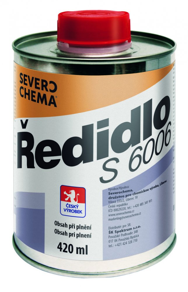 Severochema Ředidlo S 6006 je vysoce kvalitní ředidlo určené pro úpravu konzistence syntetických a olejových nátěrových hmot, laků a emailů. Usnadňuje aplikaci, zajišťuje rovnoměrné roztírání a zlepšuje přilnavost nátěrů. Je také vhodné k čištění nářadí a odmašťování povrchů před lakováním.