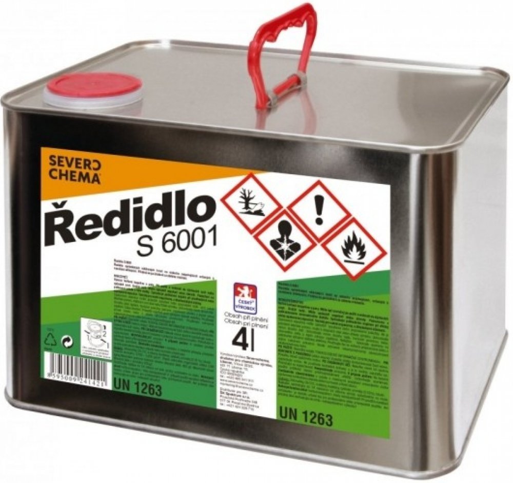 Severochema Ředidlo S6001 9 l je určeno k ředění syntetických nátěrových hmot na vzduchu schnoucích, pro nanášení stříkáním, není-li na etiketě ředěného výrobku uvedeno jinak.