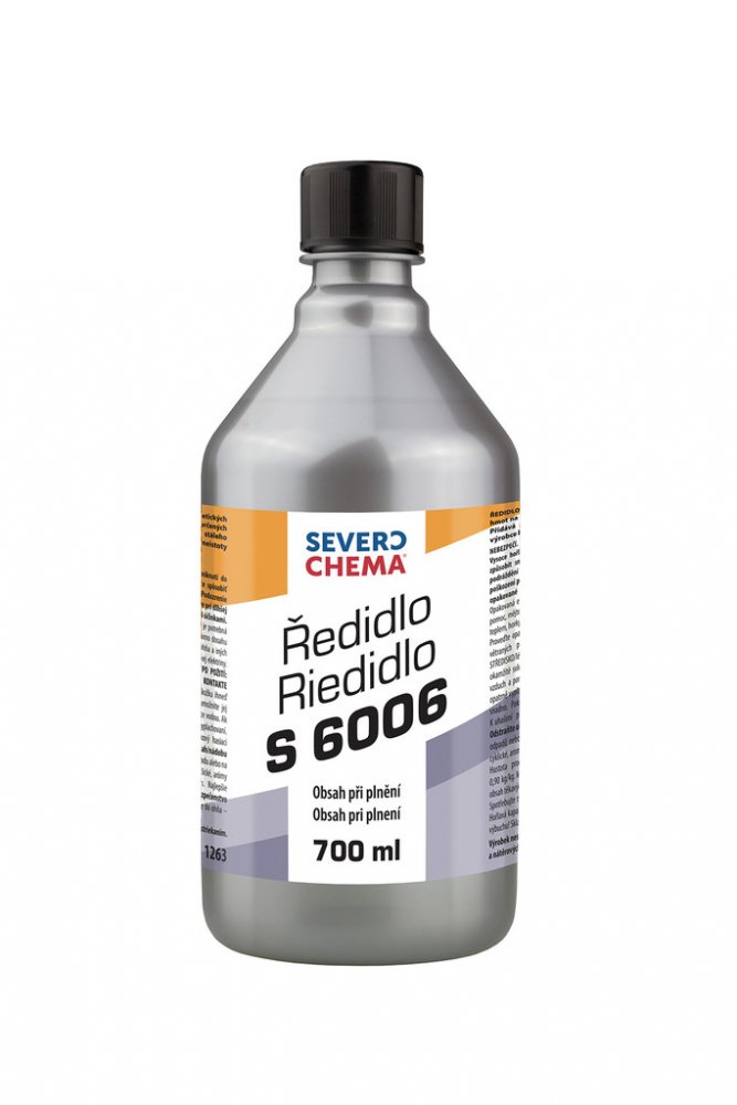 Ředidlo S 6006 se používá všude tam, kde je doporučeno použití ředidla S-6006, k ředění olejových a syntetických nátěrových hmot na vzduchu zasychajících, určených k nanášení štětcem. Přidává se po částech za stálého míchání. Lze jej použít případně k dalším aplikacím, které je nutné předem odzkoušet. Aplikace: Výrobek se aplikuje dle návodu příslušné barvy, nebo podle konkrétního způsobu použití....