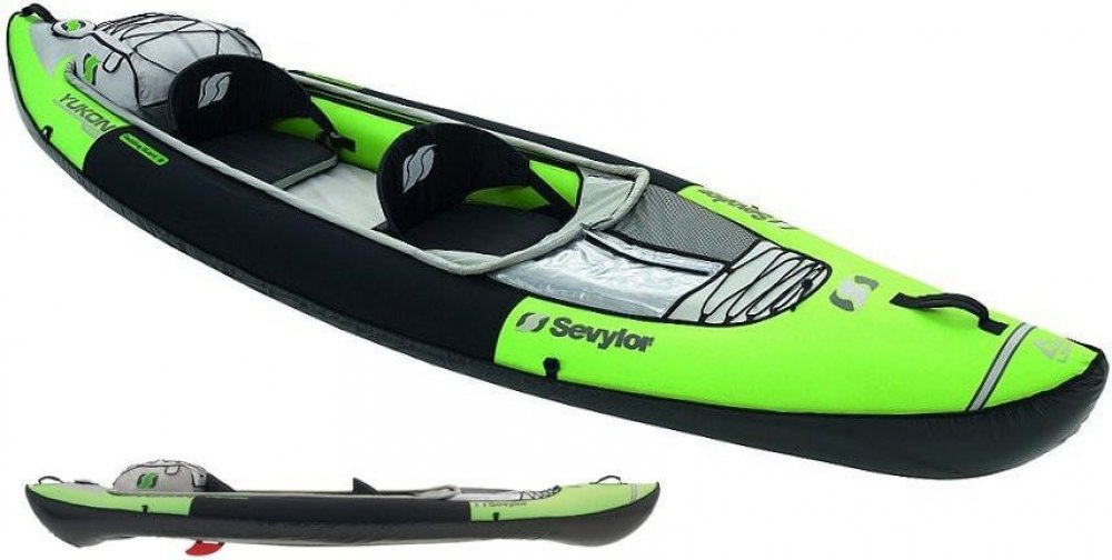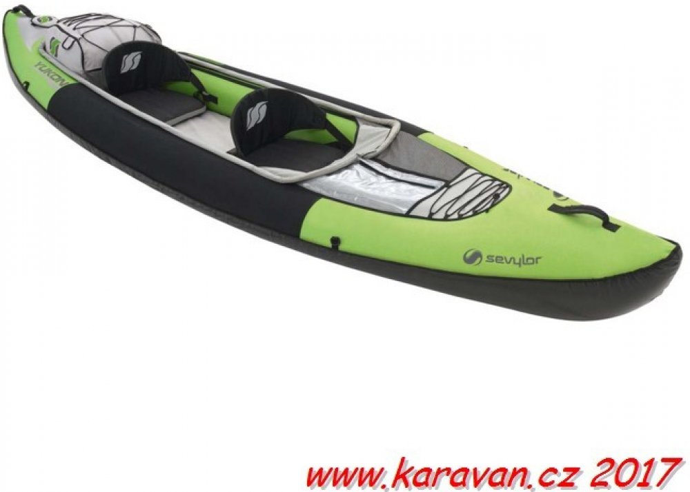 Dvoumístný nafukovací kajak Sevylor Yukon, použitelný i jako kanoe. Je určen pro pohodlné cesty po jezerech, mořském pobřeží a řekách. Jeho přednosti vyniknou zejména při dlouhých vícedenních plavbách. Kajak Yukon nabízí dostatek úložných prostorů a kapes. Voděodolný vyjímatelný vak na zádi kajaku pojme až 60 l. Nechybí voděodolný obal na mapy a další dokumenty. Dlouhá plavba vyžaduje dokonale pohodlné sezení, proto jsou sedačky nafukovací, nastavitelné a bederní opěrky polohovací. Nastavit lze i nožní opěrky. Přenášení kajaku Yukon usnadňují dvě příjemná držadla. Propracovaný bort s vyvýšeným nafukovacím okrajem významně snižuje vnikání vody do kajaku ve vlnách. Na bocích kajaku jsou neoprenové pádlovací zóny pro komfort rukou. Dno je zesíleno. Po sbalení kajaku do transportního vaku vznikne praktický lehce přenosný batoh o hmotnosti pouhých 17 kg.