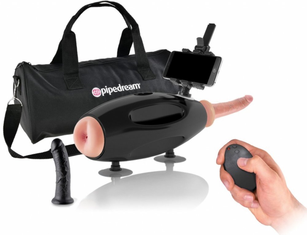 Internation Extreme Sex Machine je výkonný šukací přístroj, který má dildo z jedné strany a masturbační otvor z druhé strany. V balení jsou rovnou 2 velikosti dild, měkký poddajný masturbační otvor, plácačka na zlobivé zadečky, pouta na nenechavé ruce, maska na oči pro hlubší prožitek a další pomůcky a doplňky, které uložíte do praktické tašky.