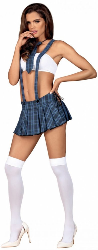 - kostým zahrnuje: halenku, sukni se šlemi, tanga, podkolenky, kravatu