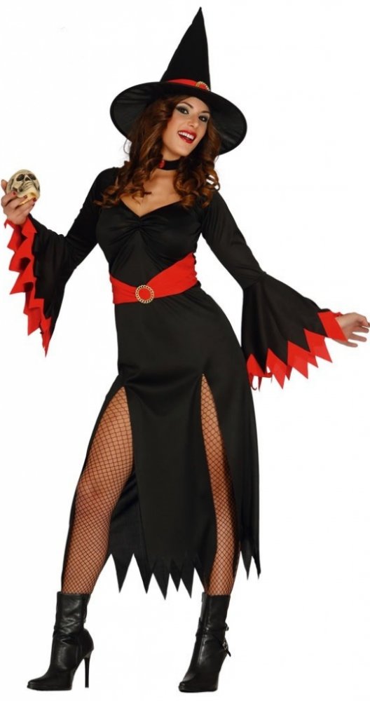 Přivítejte halloween či svatou Lucii strašidelným karnevalovým kostýmem čarodějnice. Tento dámský kostým osloví každou ženu, která se chystá na mikulášskou párty, halloweenskou párty či karneval.Kostým obsahuje: šaty, kloboukJak si správně vybrat kostým? Kostým je vyroben ze 100% polyesteru v barvě černá a červená. Rukávy jsou těsně po lokty, poté se rozšiřují. Na koncích jsou černé a červené trojúhelníky. Vrch šatů je černé barvy, prošitý ve výšce poprsí, tvořící výstřih. Spodek šatů je jednoduchý, černý, vpředu se dvěma rozparky do poloviny stehen. Prostřih v pase s červeným páskem s přezkou zlaté barvy.Díky elastickému materiálu lze přizpůsobit. V orientaci ve velikostech kostýmů Vám pomohou tyto rozměry:(M/38-40) hruď - 93-96 cm, pas - 73-75 cm, boky - 99,5-102 cm(L/42-44) hruď - 99,5-103 cm, pas - 80-84 cm, boky - 106-110 cm