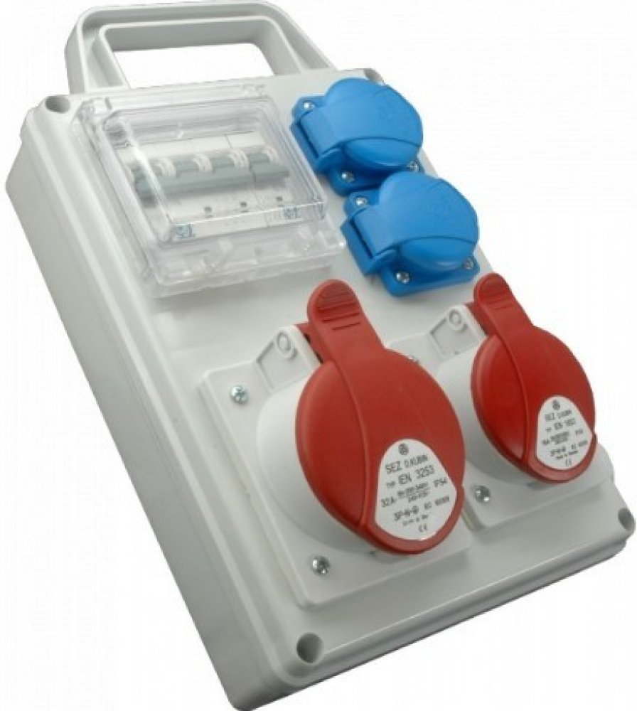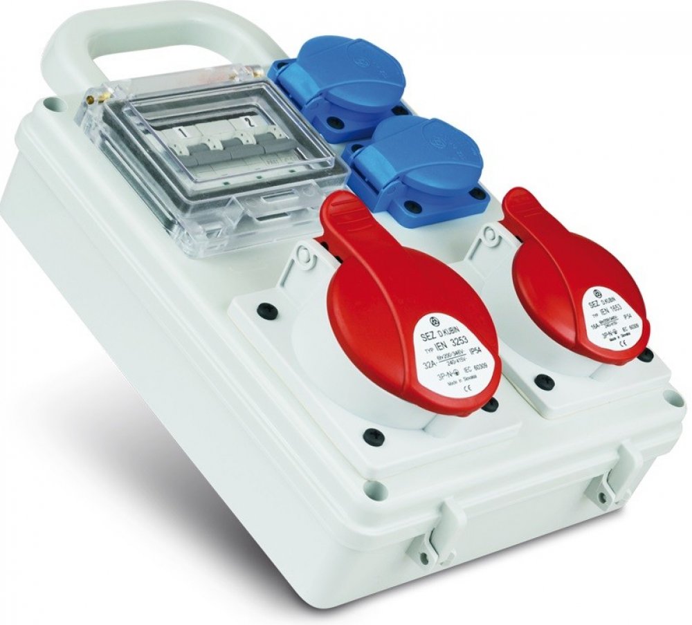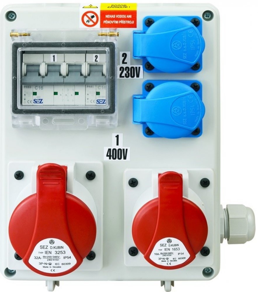 na staveništích, průmyslových rozvodech, apod. Zásuvková rozvodnice 2x1653+2x230 V, jištěná, IP 44 SEZ-CZ ROS-I 1601 Kategorie produ...