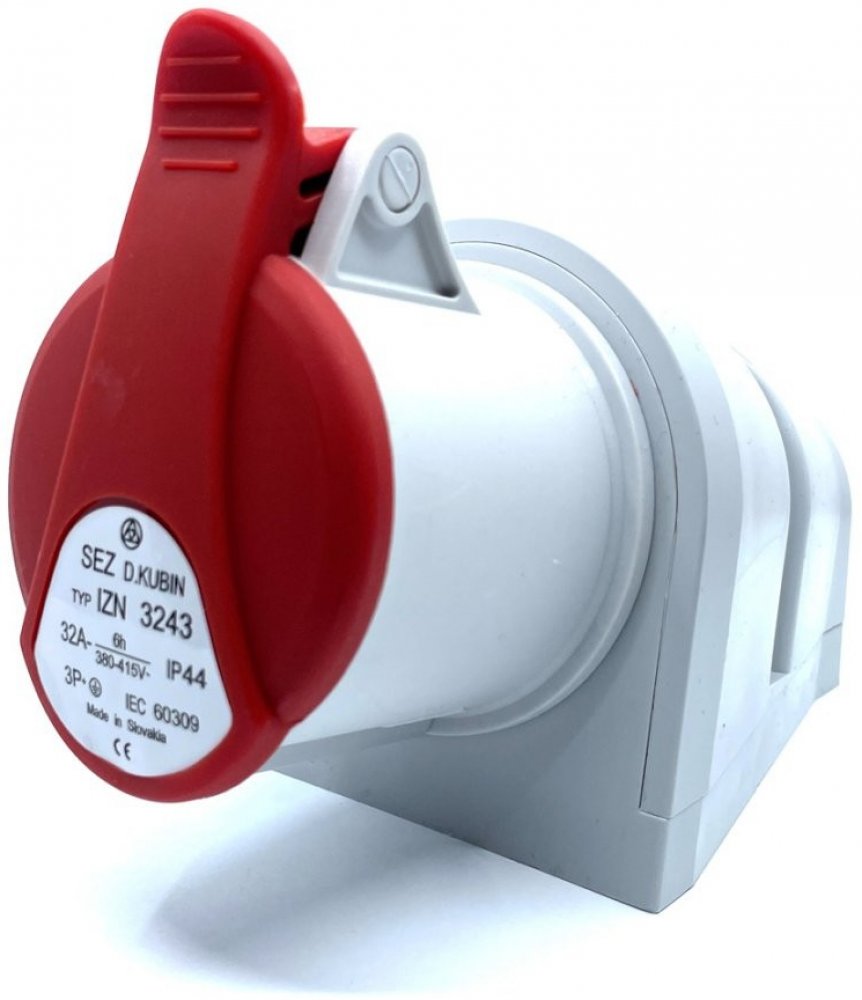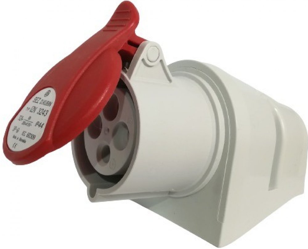 Nástěnná zásuvka 4-pólová, 400V/32A, hodnota krytí IP44, lze připojit vodič o průřezu 2,5-10 mm2. Průmyslové zásuvky a vidlice SEZ byly navrženy pro připojení elektrických zařízení nízkého napětí, ve stavebnictví, elektromontážním sektoru, strojírenském průmyslu a pod. Zásuvky, zástrčky a konektory SEZ jsou vyráběny podle evropských norem EN 60309 - 1, 2, a splňují tak mezinárodní doporučení IEC 60309 - 1, 2. Stupeň krytí IP44 Zařízení se stupněm krytí IP44 jsou dostatečně chráněna proti úrazu elektrickým proudem při nebezpečném dotyku nástrojem či drátem větším než 1 mm, jsou odolná proti vniknutí velmi drobných cizích těles a zároveň chráněna proti stříkající vodě ze všech úhlů. Tento stupeň krytí je považován za dostatečnou ochranu před deštěm a zařízení s krytím IP44 jsou voděodolná a vhodná pro venkovní použití.