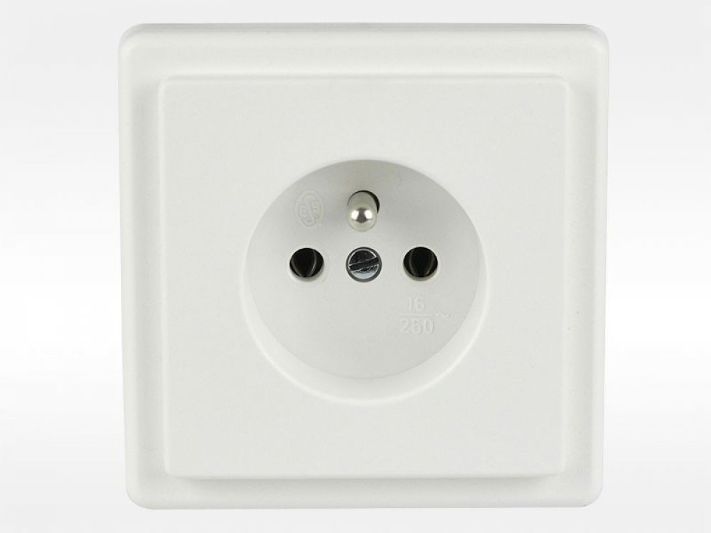 Zásuvka jednonásobná bílá s ochranným kolíkem je určena pro montáž pod omítku nebo na omítku do instalačních krabic se šířkou přístroje 60 mm. Elektrická zásuvka na 230V má šroubové svorky pro připojovací vodiče do 4mm. K připojení zásuvek a samotného rozvodu elektrické energie se nejčastěji používají kabely CYKY.
