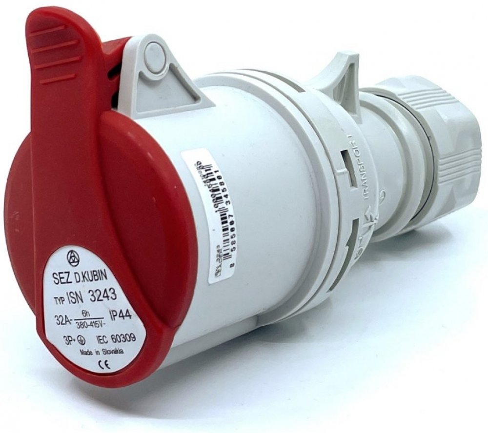 SEZ zásuvka 400V 32A/4 ISN 3243Průmyslová spojovací zásuvka značky SEZ. Tyto zásuvky a vidlice jsou určeny pro připojování elektrických zařízení a spotřebičů na nízké napětí. Jednou z výhod tohoto spojení je možnost opakovaného rozpojení obvodu s vysokou pevností a odolností.Parametry:Napětí: 400VDruh: Spojovací zásuvky (typy "IS")Proud: 32 AProvedení: 4-pólKrytí: IP 44