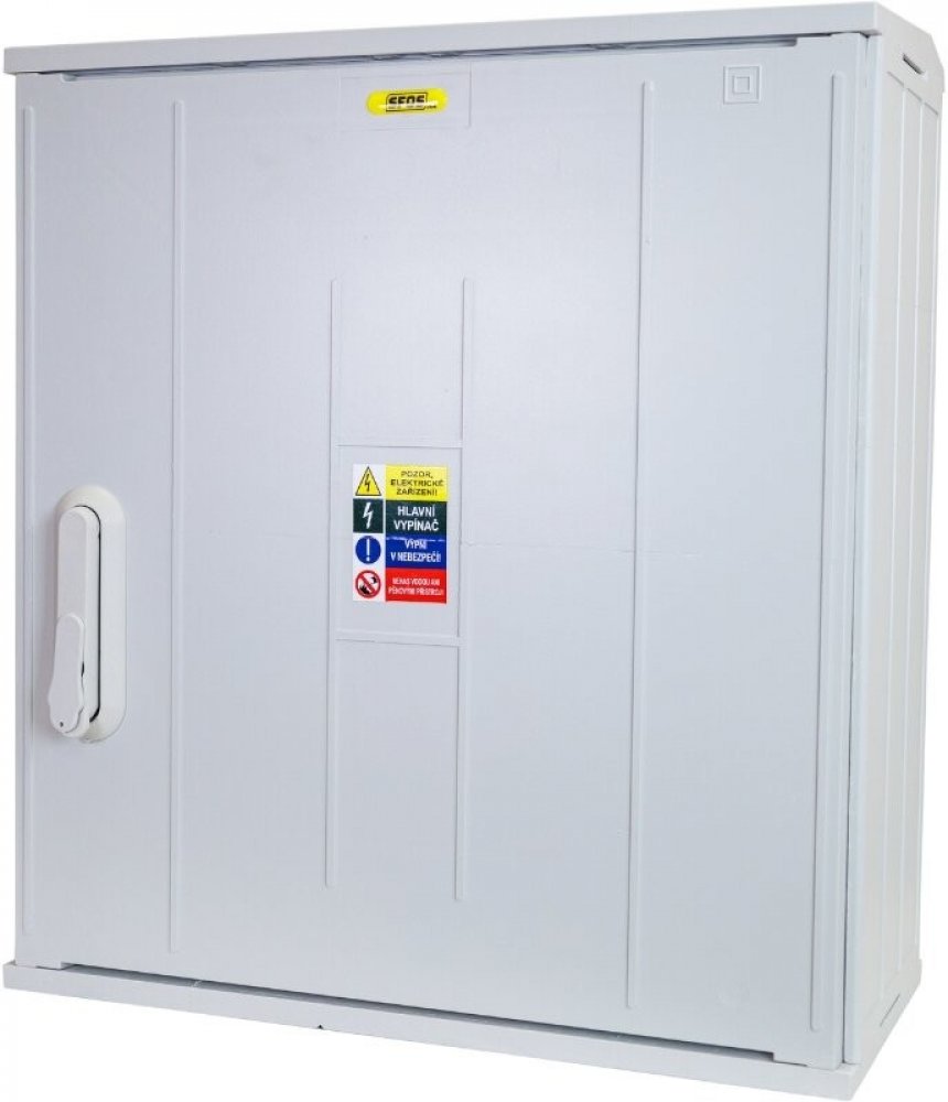 Elektroměrový rozvaděč pro 2 elektroměry SFOS 2E1R-UV třífázový jednotarifní pro uchycení na omítku, na plot, zazdění do plotu nebo pod omítku. Hodí se pro domy či objekty s vyšším odběrem elektřiny. Neumožňuje zapojení dvoutarifního měření a odběr v nízké sazbě (tzv. noční proud).