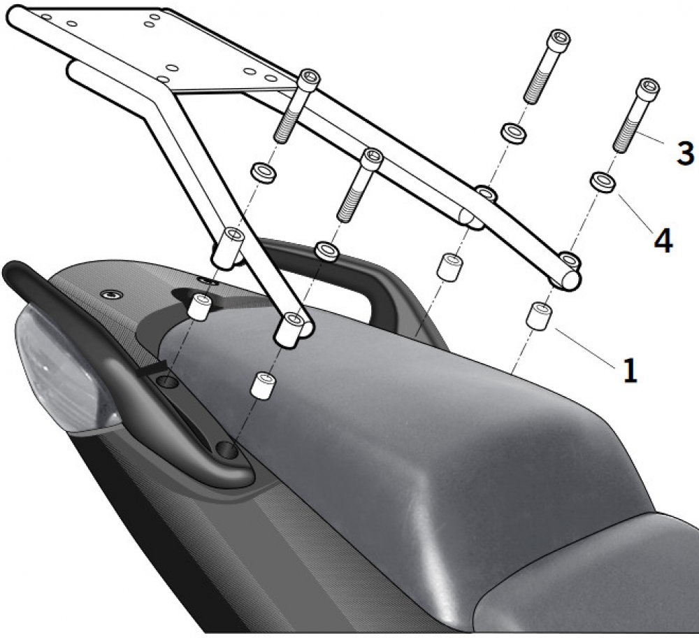 K upevnění vrchního kufru na motorku stačí namontovat tuto montážní sadu, plotna je vždy součástí kufru.
