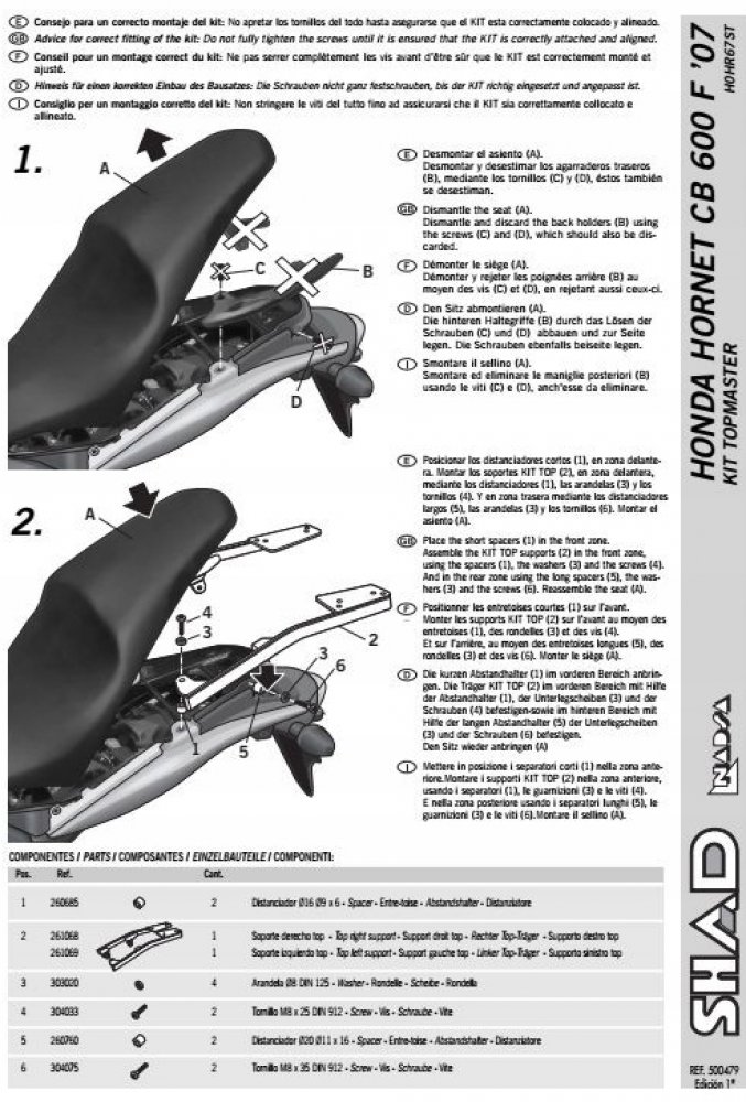 Montážní sada pro horní kufr SHAD, vhodná pro všechny typy. Nemusíte objednávat žádné další díly, stačí pouze vybrat kufr dle Vašich představ., Plotna: univerzální, kompatibilní se všemi vrchními kufry.
