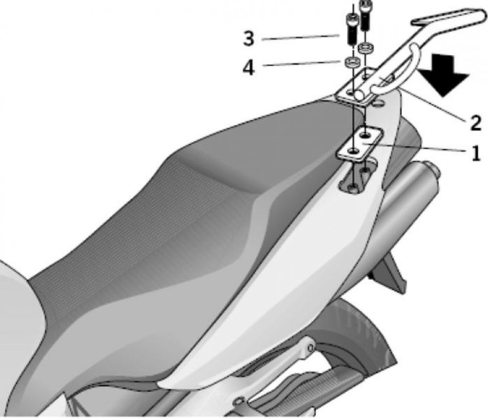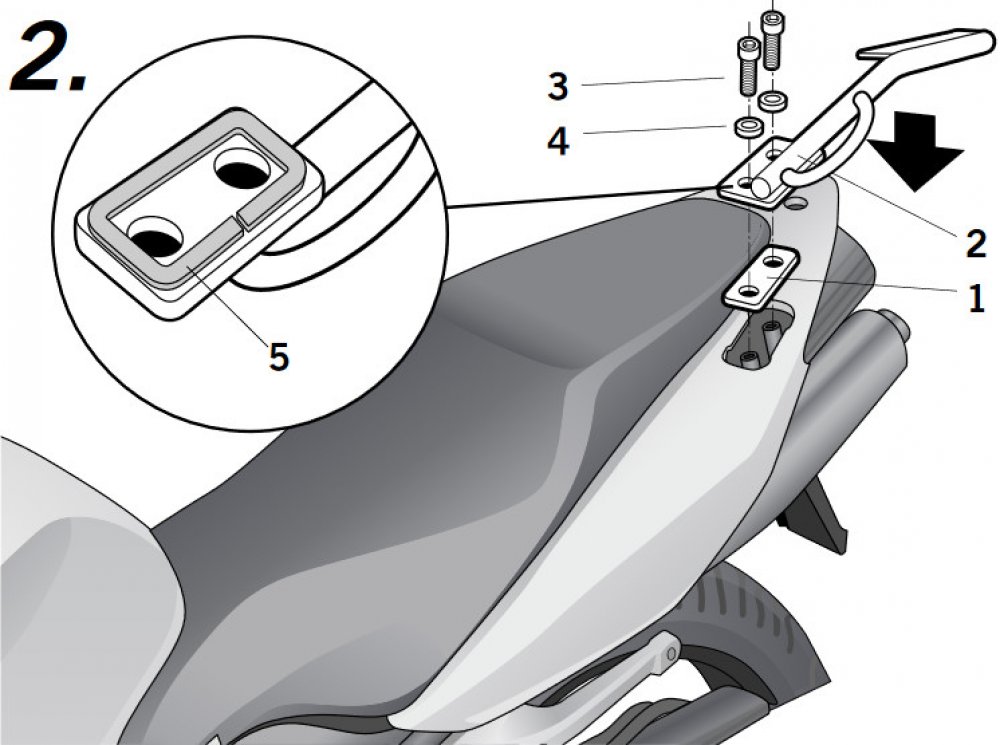 K upevnění vrchního kufru na motorku stačí namontovat tuto montážní sadu, plotna je vždy součástí kufru.