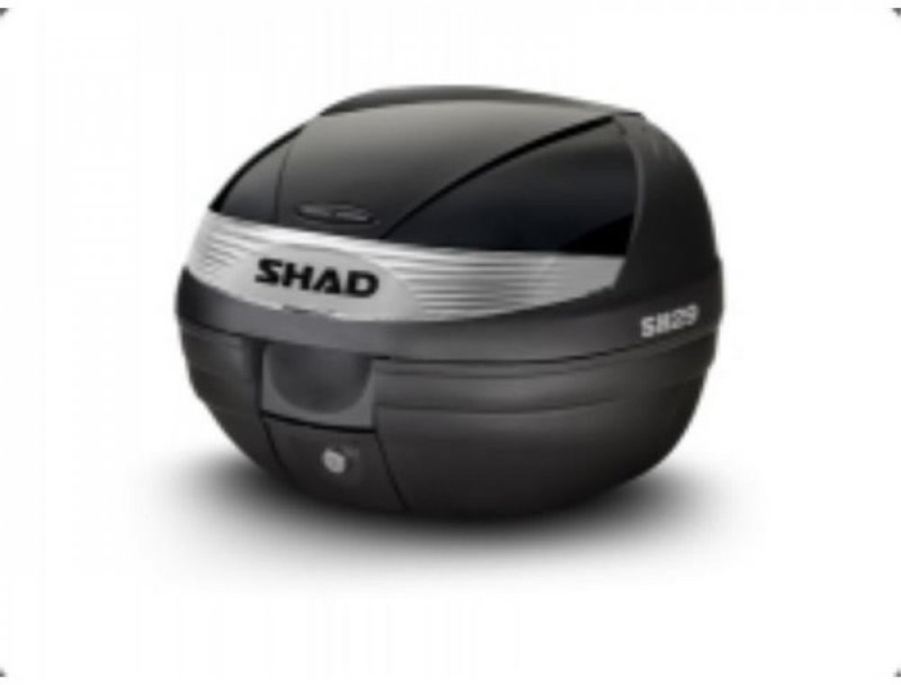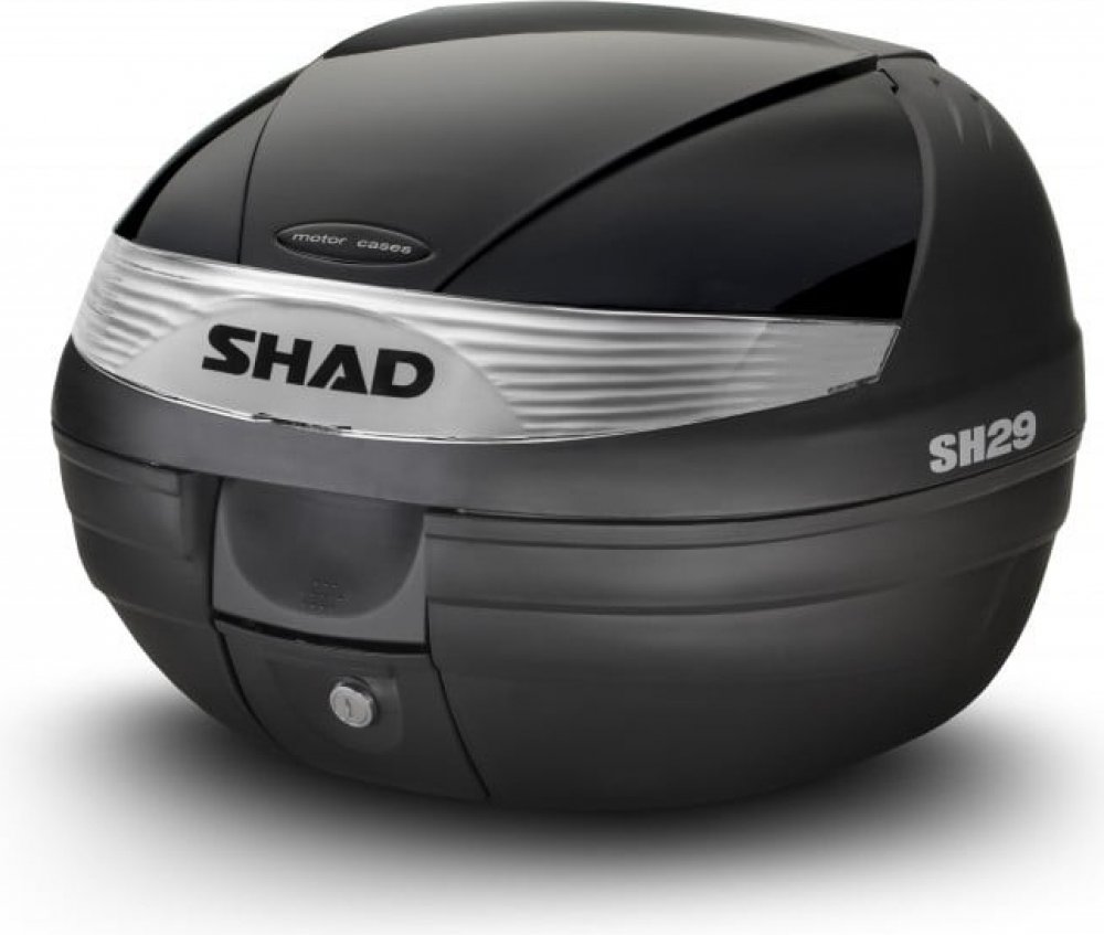 Kapacita: 30 LRozměry: 38 × 40 × 30 cm (šířka × výška × hloubka).Maximální doporučená zátěž: 3 kgObsahuje „Press Lock System“ – Snadné otevírání a zavírání jednou rukouIdeální pro skútry – Kompaktní a praktický designJednoduchá manipulace – Kufr lze otevřít, zavřít, sejmout z motocyklu a přenášet jednou rukou, a to bez použití klíče.Zámkový systém – Jedním otočením klíče se zamkne kufr i jeho uchycení k motocyklu. Součástí balení je sada 2 klíčů.Součástí balení je montážní plotna SHAD se sadou šroubů a držáků.Většina motocyklů však vyžaduje specifickou montážní sadu SHAD „Top Master“Vrchní kufr SH29 vhodný pro uložení jedné helmy Vrchní kufr SH29 je kompaktní a velmi praktický vrchní kufr vyrobený z vysoce kvalitního tvrzeného polypropylenu, schopný pojmout vyklápěcí helmu a rukavice. Jedná se o základní model řady vrchních kufrů SHAD se zaobleným tvarem a kouřovou odrazkou. Svou velikostí je vhodný pro skútry a menší motorky s nižším objemem.Kufr je vybaven zámkem a stejně jako všechny vrchní kufry SHAD, je možné ho otevřít a zavřít pouze jednou rukou, k otevření nebo zavření není potřeba klíč. Klíč je nutný pouze v případě, že chceme kufr zamknout. Kufr má úchytku, která přebírá roli ergonomické rukojeti pro snadné přenášení kufru.Pokud kladete důraz na design, určitě oceníte možnost výběru z různých barevných variant krytu kufru : modrá, stříbrná, bílá, červená, lesklá černá a nebo varianta bez laku, kdy si barvu můžete sami přizpůsobit podle vlastního vkusu.Jako volitelné příslušenství lze ke kufru dokoupit opěrku a brzdové světlo. Opěrka (D0RI40) zaručuje větší pohodlí pro spolujezdce. Brzdové světlo (D0B29KL) je úsporné LED světlo, jehož montáž je velice snadná. Toto světlo zvyšuje bezpečnost provozu, protože motocykl se s tímto světlem stává mnohem viditelnější zezadu.Stejně jako všechny vrchní kufry SHAD (kromě TR48/TR37) je i SH29 dodáván s plotnou a sadou montážních šroubů.