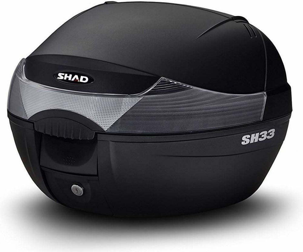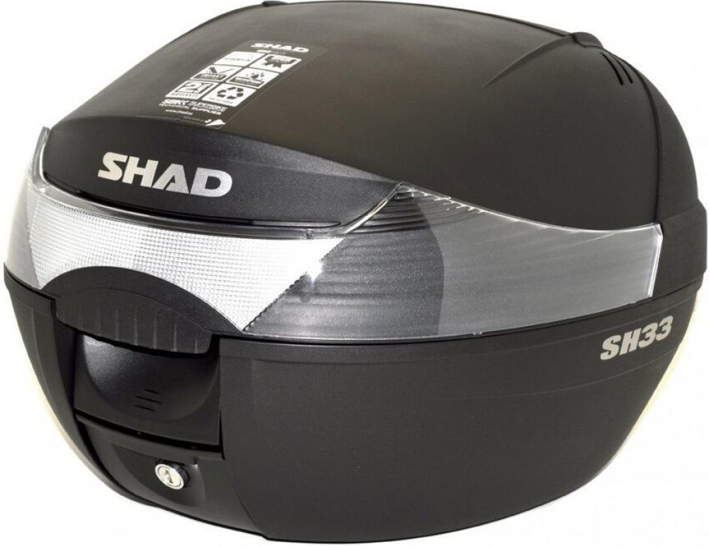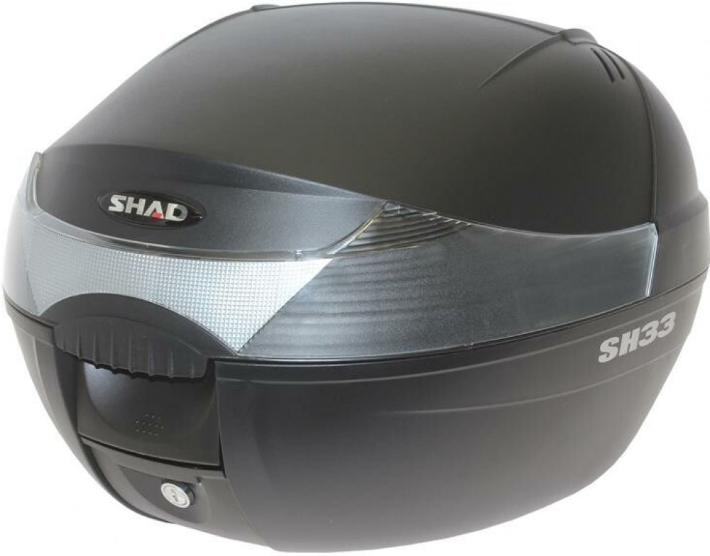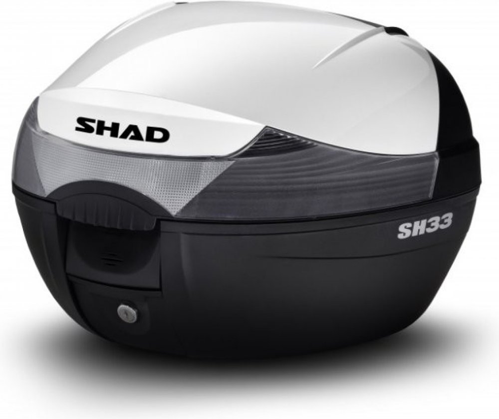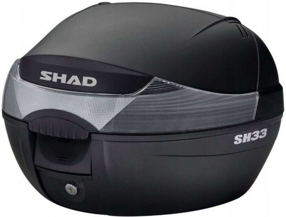Vrchní kufr SH33 je kompaktní a velmi praktický vrchní kufr vyrobený z vysoce kvalitního tvrzeného polypropylenu, schopný pojmout vyklápěcí helmu a rukavice. Jedná se o základní model řady vrchních kufrů SHAD se zaobleným tvarem a kouřovou odrazkou. Svou velikostí je vhodný pro skútry a menší motorky s nižším objemem.