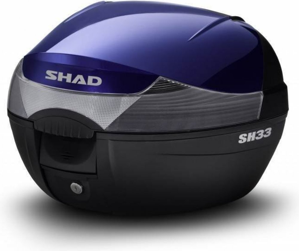 SH33 je kompaktní kufr s kapacitou pro jednu helmu a rukavice. Opěrka, brzdové světlo a barevné kryty dostupné jako příslušenství. Včetně plotny.