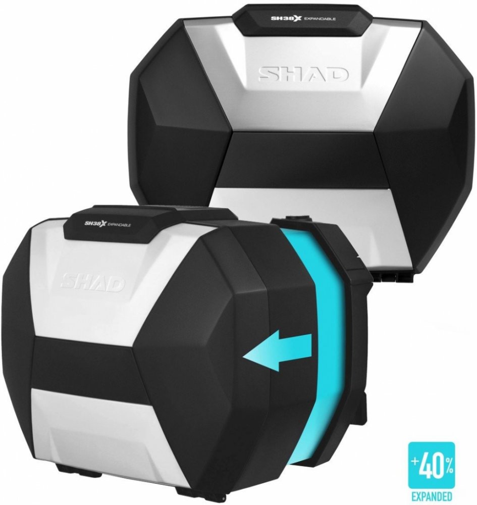 Model SH38X se tak připojuje ke stávající řadě rozšiřitelných horních kufrů SH58X a SH59X, což umožňuje nejnáročnějším a nejpokročilejším motorkářům mít k dispozici sadu ROZŠÍŘITELNÝCH horních a bočních kufrů.