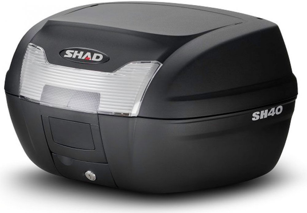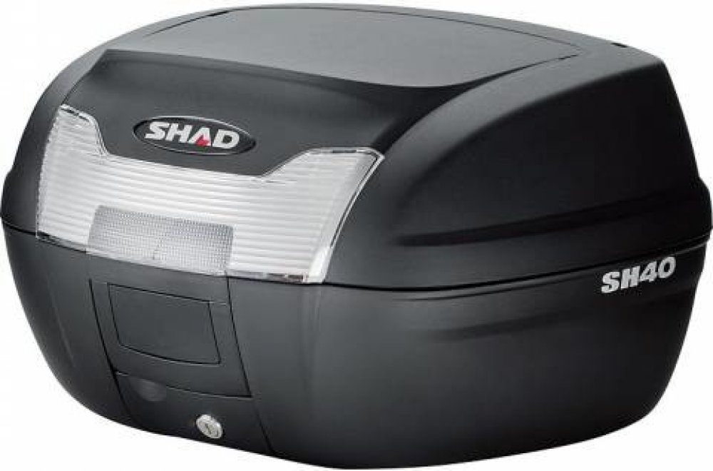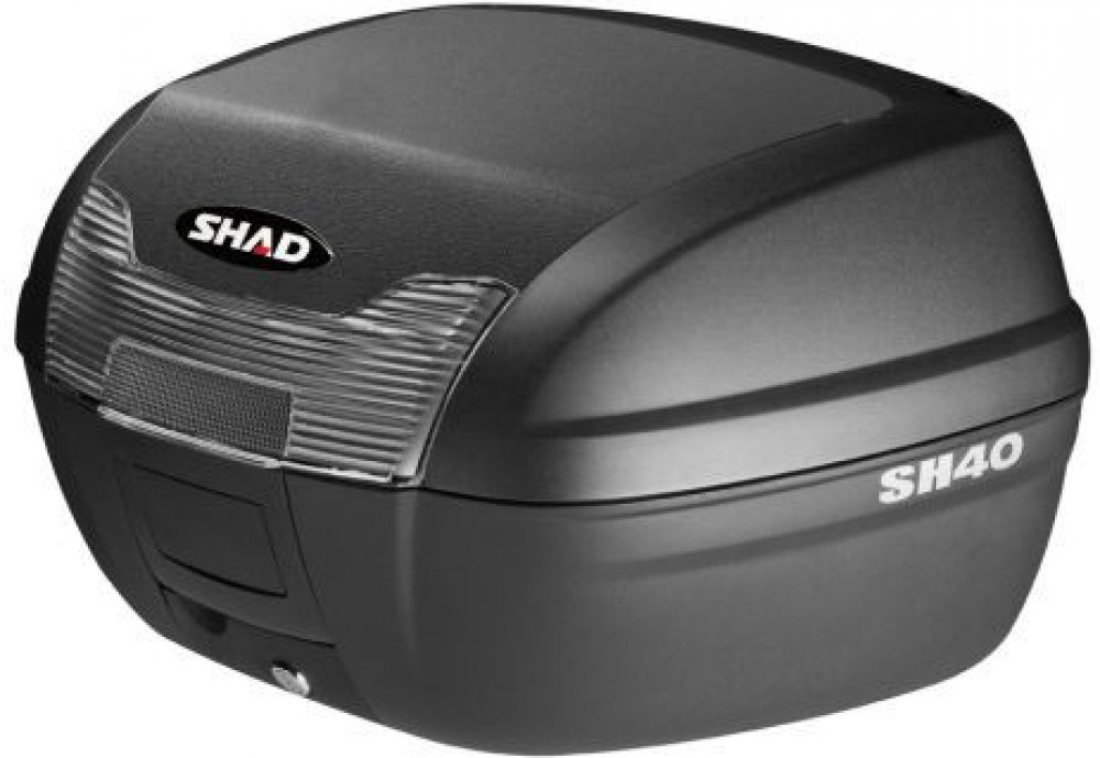 Atraktivní a robustní kufr značky SHAD typu TopCase s dostatečnou kapacitou 40 litrů pro jednu Integrální helmu nebo pro dvě Jet-helmy. Díky patentovanému systému zamykání Smart Lock System je možné TopCase SHAD SH40 jednoduše uzamknout a v případě potřeby rychle a bez nářadí sejmout z nosiče. Seriově se Topcase dodává bez lakovaného krytu. Na přání je možné vybavit zádovou opěrkou, brzdovým světlem pod nosič a případně krytem jiné barvy. TopCase je standardně dodáván s upínací plotnou (adaptérem) a sadou montážního materiálu, což zajišťuje optimální jednoduchou montáž na téměř všechny typy skútrů a motocyklů.