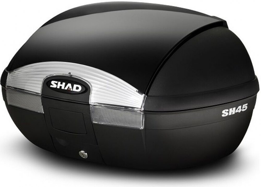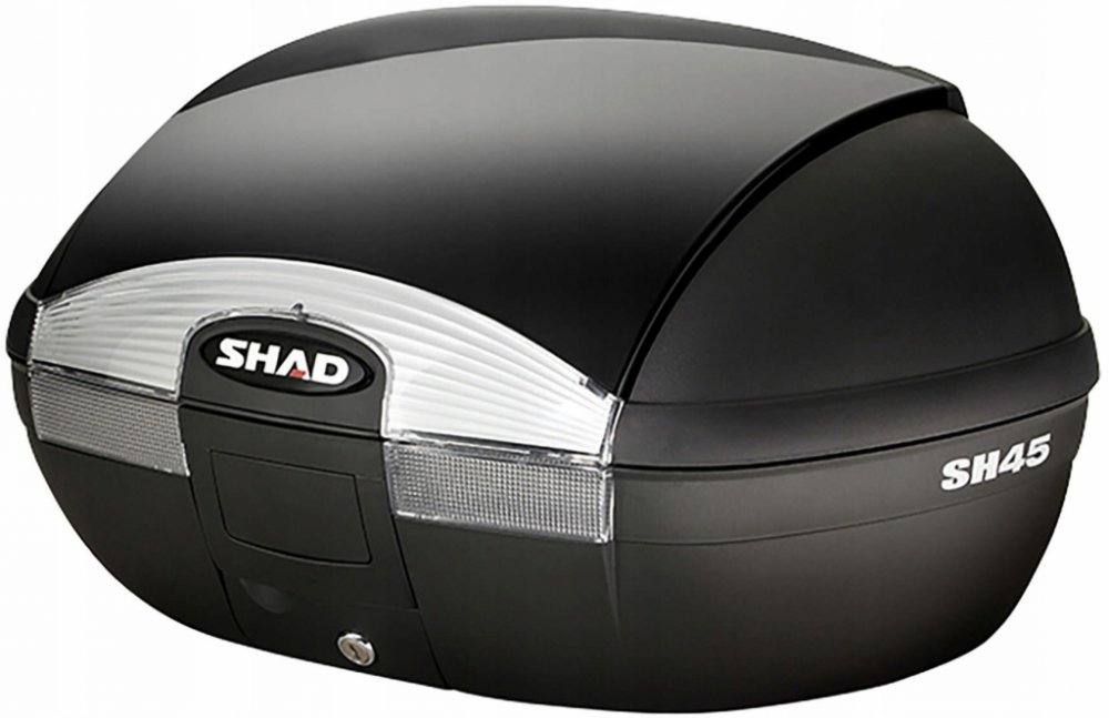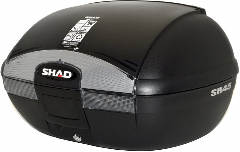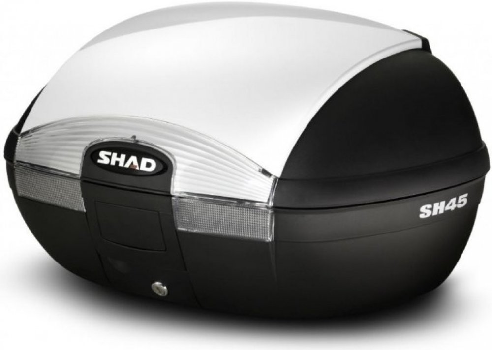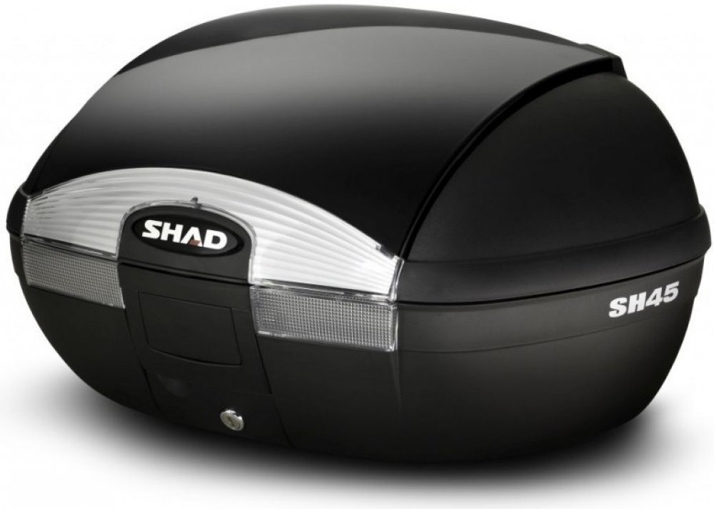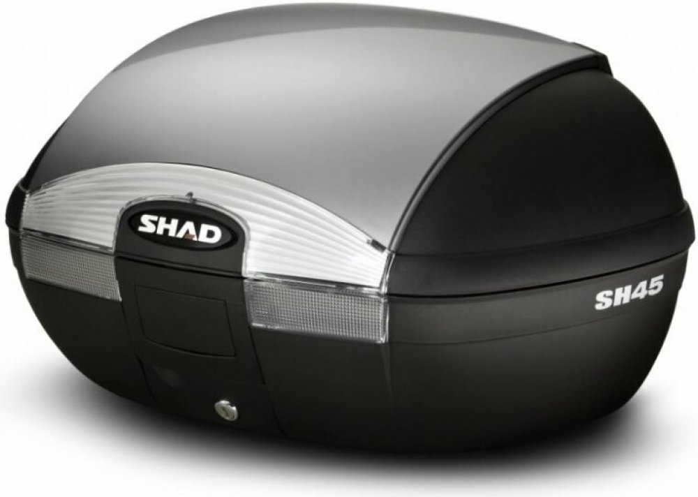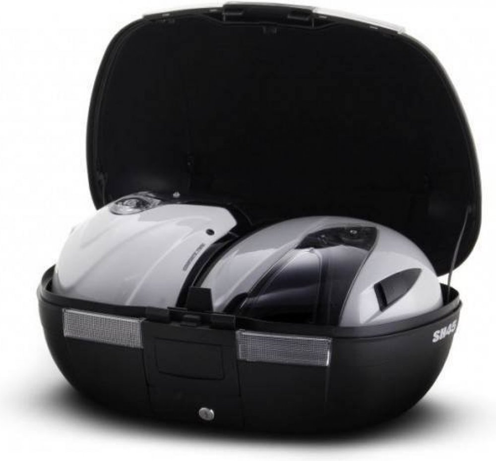 Vrchní kufr SH45 je robustní vrchní kufr vyrobený z vysoce kvalitního tvrzeného polypropylenu. Tento kufr je schopný odolat extrémním teplotám, sněhu i dešti a zároveň chrání obsah před nárazy a poškozením. Je vhodný pro jízdy ve městě i na delší výlety na skútrech, středních i větších motorkách, vejdou se do něho 2 integrální helmy, má zaoblený tvar a kouřové odrazky.