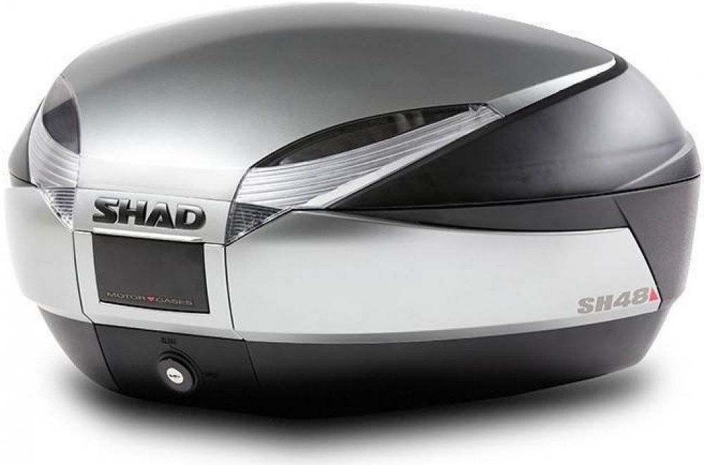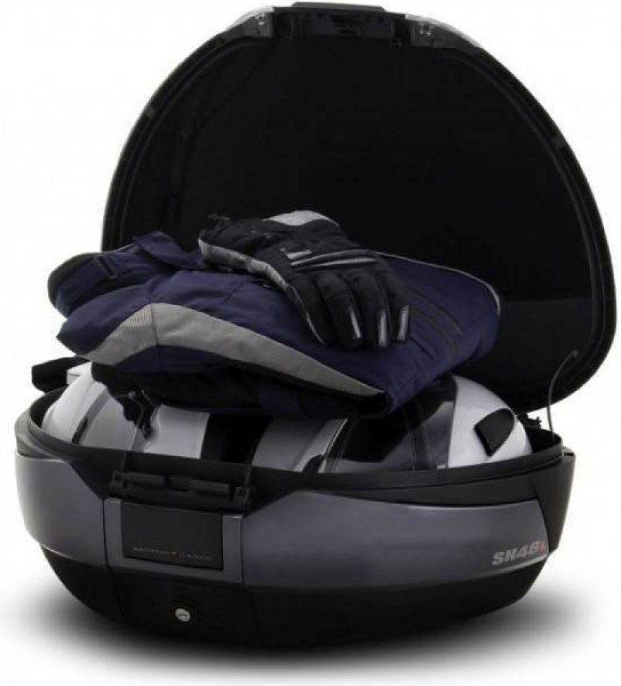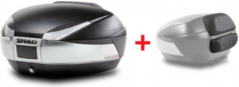SH48 prémiový kufr pro dvě XXL helmy. Dostupná opěrka, nosič, brzdové světlo, vnitřní taška a barvy k SH36. Včetně plotny. Opěrka není součástí.