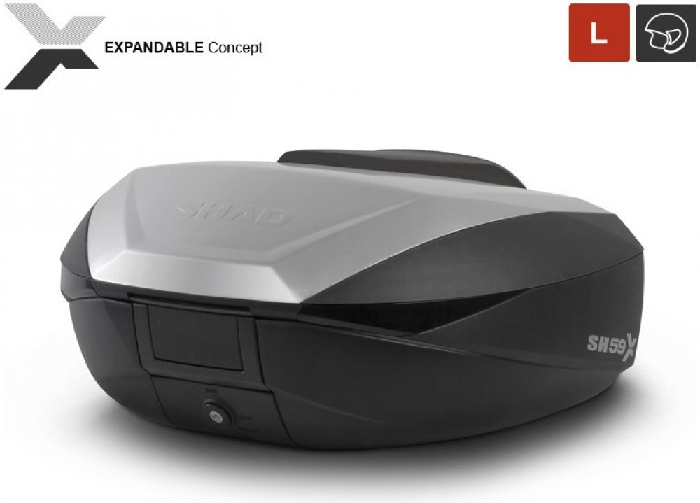 Nový motocyklový kufr SH59X nabízí exkluzivní rozšiřitelný koncept, pomocí kterého kufr nastavíte do tří velikostí (L, XL a XXL). Pokud zvolíte právě největší z velikostí, bude mít tento kufr na motorku objem až 59 l. Pohodlně se do něj tedy vejdou i dvě helmy. Právě díky své kapacitě se tento vrchní kufr přizpůsobí každodennímu životu na vašem motocyklu a vysněným dobrodružným výletům. SH59X jsou velice všestranné. Díky několika pohybům je během vteřiny změníme z aerodynamického kufru na velký cestovní kufr.