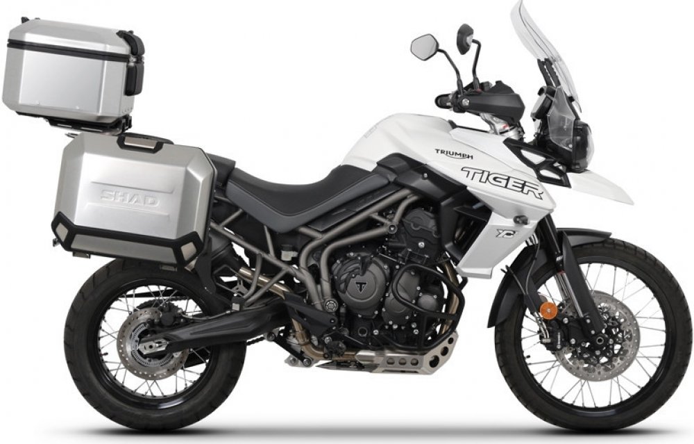 Kompletní sada hliníkových kufrů SHAD Terra obsahuje vrchní kufr TR48 s kapacitou 48L včetně plotny, levý hliníkový kufr TR47 s kapacitou 47L a pravý hliníkový kufr TR36 s kapacitou 36L kvůli umístění výfuku. Pravý kufr tak nebude vyčnívat. Sada obsahuje vše, co potřebujete k montáži obou kufrů.