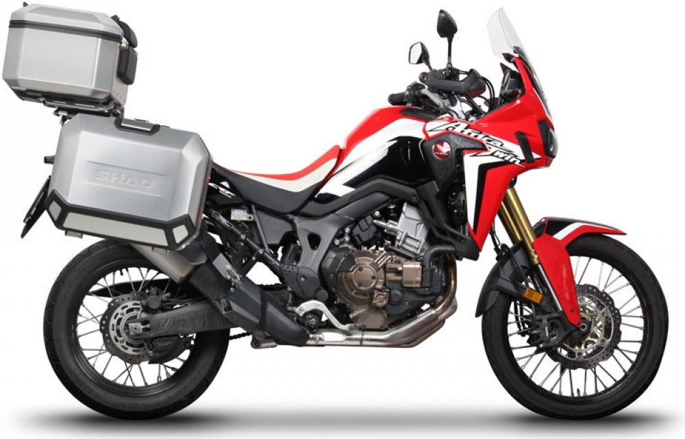 Kompletní sada hliníkových kufrů SHAD Terra obsahuje vrchní kufr TR48 s kapacitou 48L včetně plotny, levý hliníkový kufr TR47 s kapacitou 47L a pravý hliníkový kufr TR36 s kapacitou 36L kvůli umístění výfuku. Pravý kufr tak nebude vyčnívat. Sada obsahuje vše, co potřebujete k montáži obou kufrů.