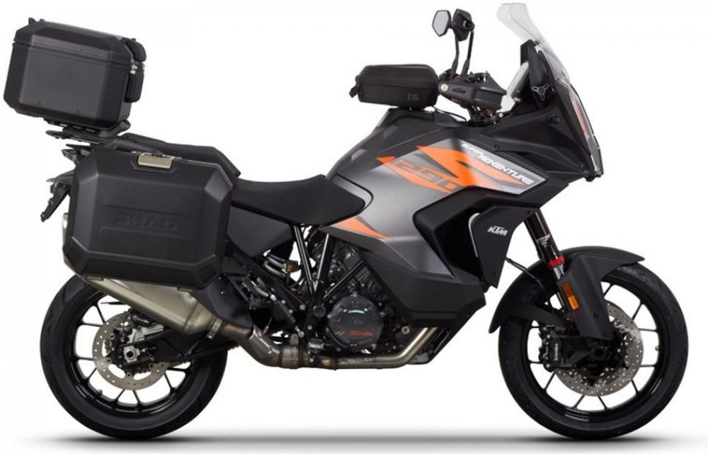 Kompletní sada černých hliníkových kufrů SHAD Terra obsahuje černý vrchní kufr TR48 s kapacitou 48L včetně plotny, levý černý hliníkový kufr TR47 s kapacitou 47L a pravý černý hliníkový kufr TR36 s kapacitou 36L kvůli umístění výfuku. Pravý kufr tak nebude vyčnívat. Sada obsahuje vše, co potřebujete k montáži obou kufrů.