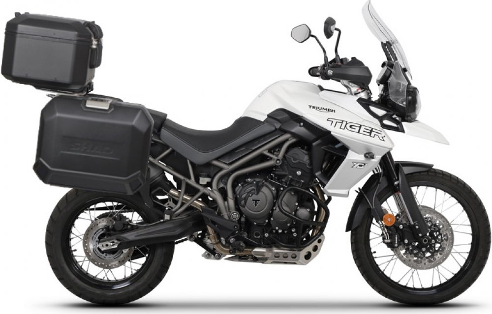 Kompletní sada černých hliníkových kufrů SHAD Terra obsahuje černý vrchní kufr TR48 s kapacitou 48L včetně plotny, levý černý hliníkový kufr TR47 s kapacitou 47L a pravý černý hliníkový kufr TR36 s kapacitou 36L kvůli umístění výfuku. Pravý kufr tak nebude vyčnívat. Sada obsahuje vše, co potřebujete k montáži obou kufrů.