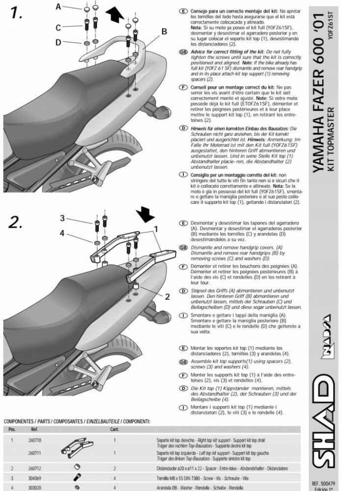 Montážní sada Top Master umožňuje připevnit vrchní kufr na motorku. Je speciálně navržena pro každý model motorky podle jejích vlastností. Výsledkem je vysoce kvalitní výrobek, pohodlný, bezpečný a snadno se s ním manipuluje.