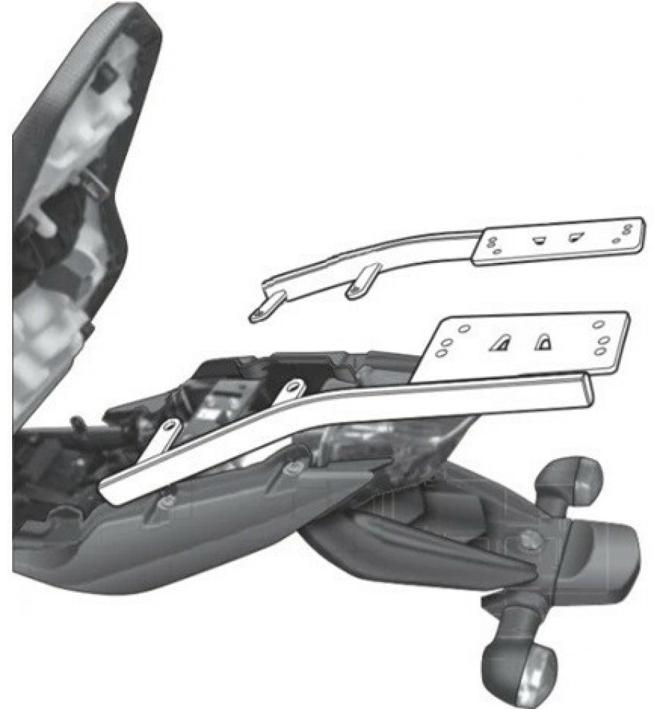 K upevnění vrchního kufru na motorku stačí namontovat tuto montážní sadu, plotna je vždy součástí kufru.