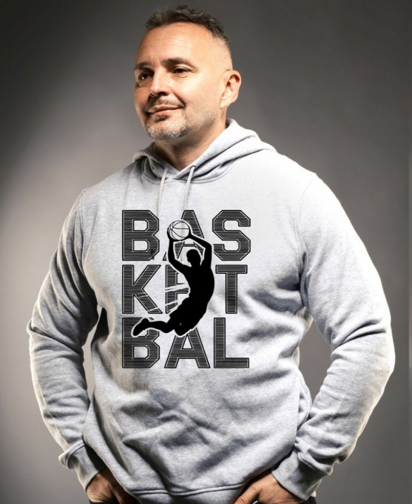 Shadow basketbal, černý potisk. Skok, koncentrace a moment vítězství! Basketbal je o hbitosti, výskoku a přesné ruce.