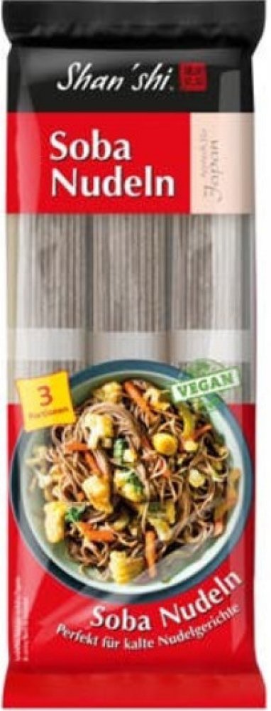 -- Těstoviny z pšeničné a pohankové mouky, bezvaječné, sušené. Soba nudle.Název pochází z japonštiny, kdy v japonštině Soba znamená pohanka. Soba nudle je perfektně hodí k přípravě asijských pokrmů, zvláště polévek. Perfektně se hodí ke smažení s masem…