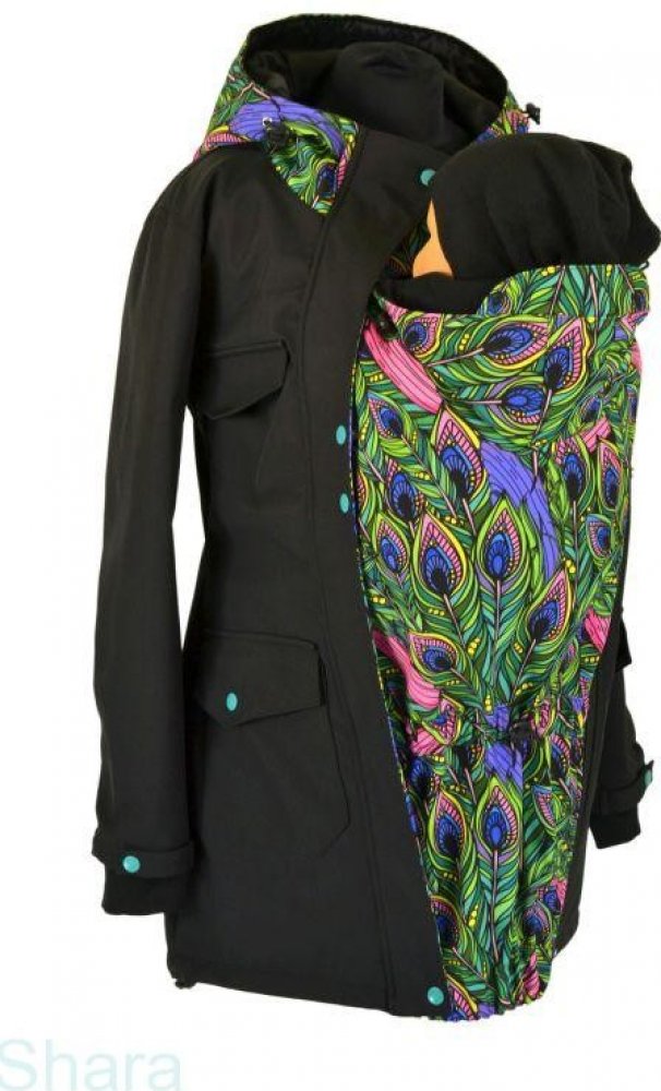 Shara softshellový kabát zimní vsadka se vzorem přední nošení černá/paví pera
