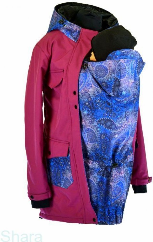 Shara softshellový kabát zimní vsadka se vzorem přední nošení fuchsie/modrorůžová obloha