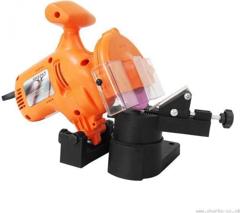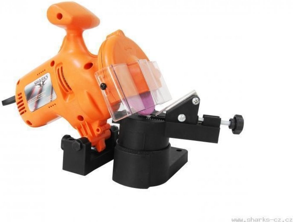 Univerzální ostřička všech běžných pilových řetězů, díky které snadno naostříte jakýkoliv běžný pilový řetěz. Pevná fixace k pracovnímu stolu, jednoduché ovládání pouhým přítlakem na skříň motoru, upevnění a aretace řetězu pomocí šroubu. Servisní linka Sharks pro radu s obsluhou či zapojením.