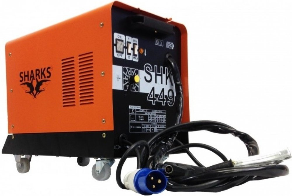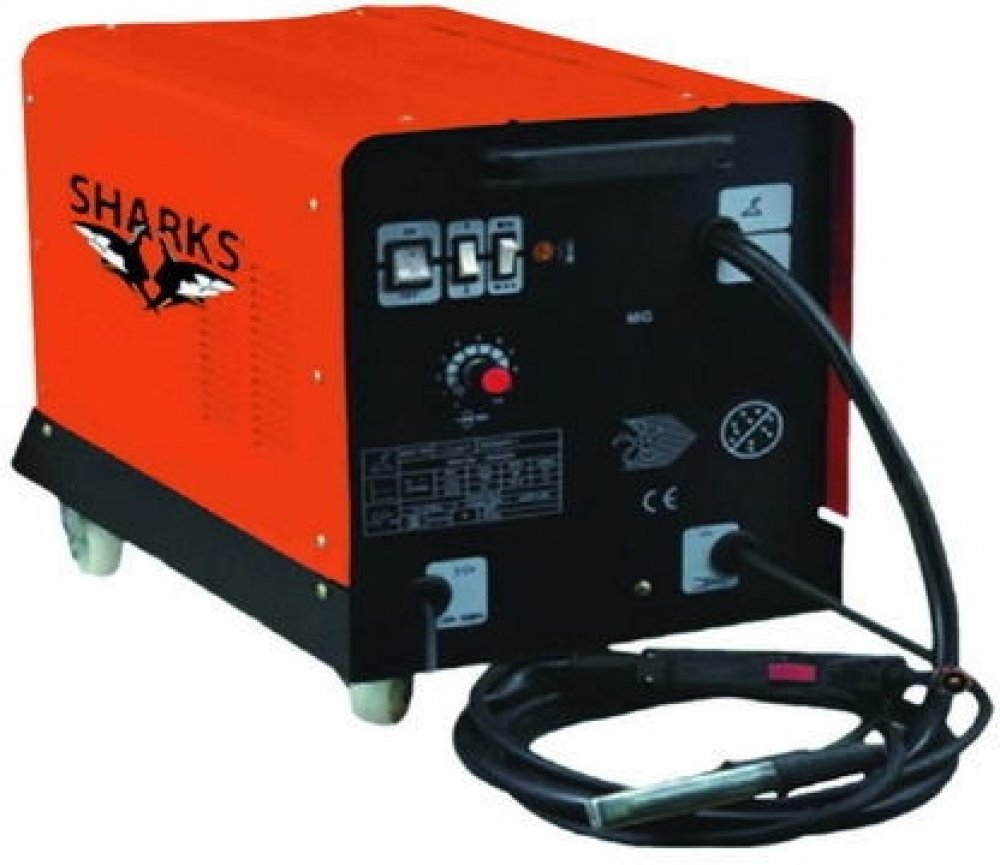 Moderní svářečka invertor Sharks MIG 190 je určena pro svařování v ochranné atmosféře CO2 nebo mix CO2/Argon. Disponuje vestavěným teplotním spínačem, který chrání zařízení proti přetížení. Tento model používá chladicí systém nuceného oběhu vzduchu, je vybaven pro 160 A maximálního výkonu s plynule nastavitelným podáváním drátu. Pohyb usnadňují čtyři kolečka, dále svařovací hořák s hadicí, maskou, kartáčem a kladívkem.