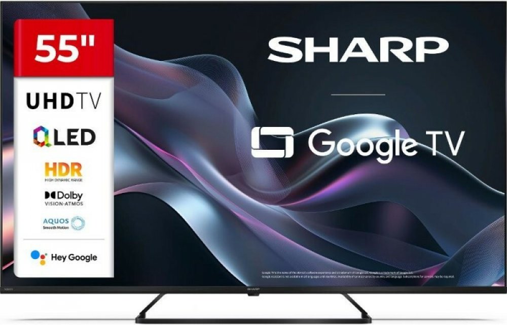 Sharp 139 cm QLED 55.0 palců Google TV 2023 Černá Dálkový ovladač 3840 x 2160 1000 Hz 60 1.5-3.0m optimální Silný HDR výkon 4 2 4 porty (4× plná rychlost 48Gbps) 73 W F 73.0 kWh Snadná montáž (standardní VESA) 11 kg 400 x 300 Vyžaduje 130cm+ nábytek 1226 x 708 x 82 mm Starší platforma (může zpomalovat) 4K HDR streaming připraven Dobrý vestavěný zvuk