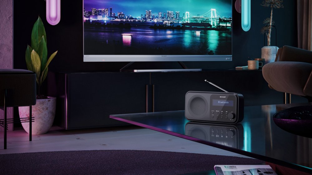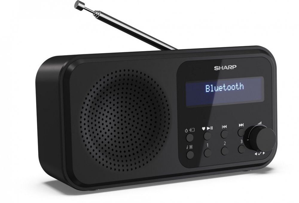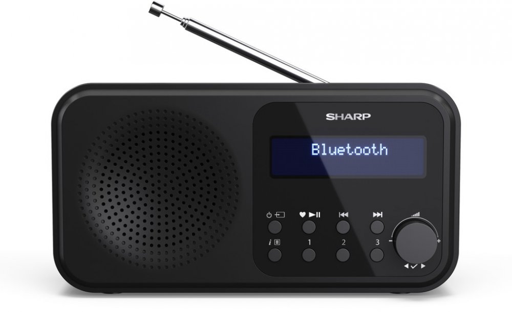 Sharp automatické ladění, bluetooth, duální alarm, RDS DAB, FM stereo (2.0) 2 časy buzení přenosné LED 40 53 mm 90 mm 174 mm 400 g