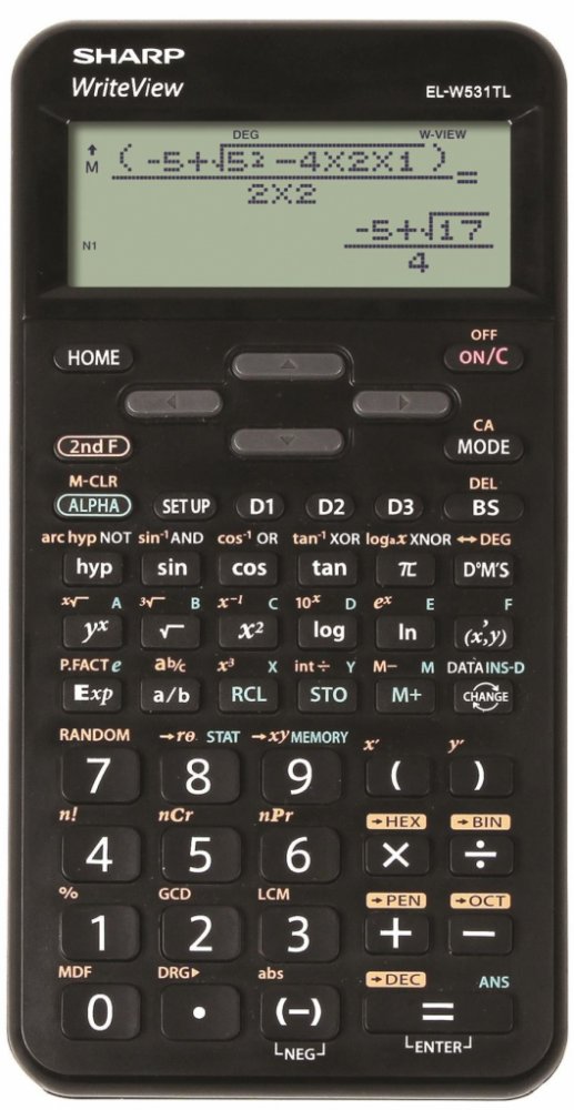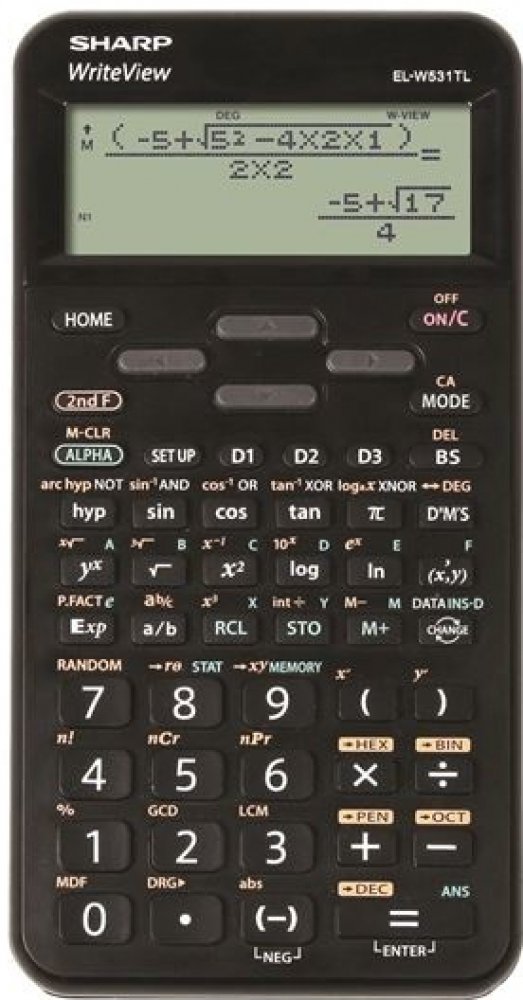 Vědecká kalkulačka Sharp ELW531TLB vhodná pro studenty středních školTato kalkulačka má bodový displej, na který se vejde až 16 číslicDisponuje 420 matematickými, statistickými a trigonometrickými funkcemiNapájí se baterií a malým solárním panelemKalkulačka je vybavená plastovým krytemRozměry: 8,0 x 1,5 x 15,8 cmVáha: 110 gBarva: černá