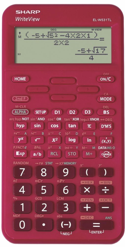 Vědecká kalkulačka Sharp ELW531TLB vhodná pro studenty středních školKalkulačka má bodový displej, na který se vejde až 16 číslicDisponuje 420 matematickými, statistickými a trigonometrickými funkcemiNapájí se baterií a malým solárním panelemPlastový krytRozměry: 8,0 x 1,5 x 15,8 cmVáha: 110 gBarva: červená