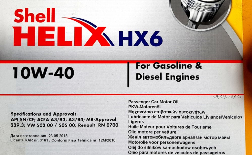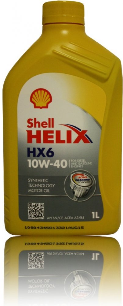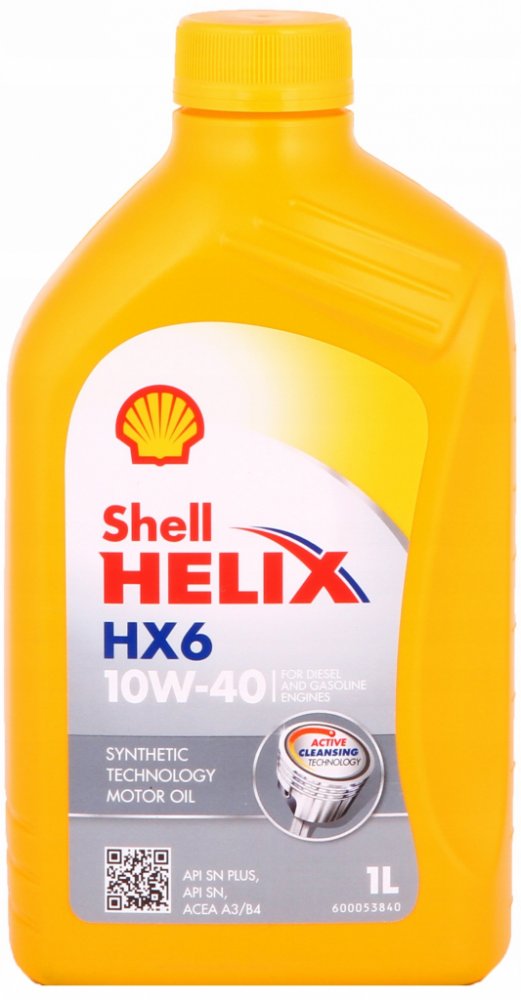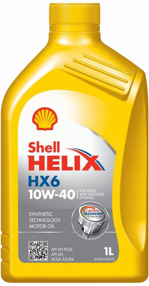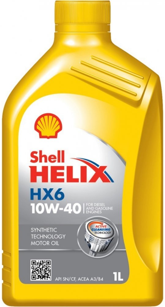 SHELL HX6 10W-40 je částečně syntetický motorový olej, pro benzínové, dieselové a plynové motory osobních a lehkých užitkových vozidel. Je vhodný pro atmosférické, přeplňované motory a motory s víceventilovou technologií. Použitím tohoto oleje je zaručena dokonalá ochrana motoru při studených startech, vysoká čistota a snížená spotřeba paliva. Zcela nové složení obsahuje speciální čistící aditiva, která zajišťují maximální čistotu motoru a odstraňují i dlohodobě usazené škodlivé nečistoty a usazeniny.