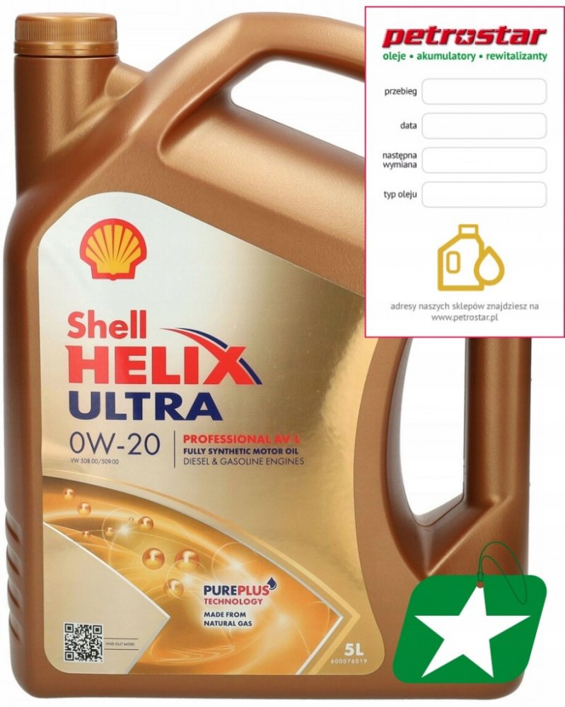 SHELL HELIX ULTRA PROFESSIONAL AV-L 0W-20 je plně syntetický motorový olej viskozitní třídy SAE 0W-20 pro benzinové a dieselové motory koncernu VW. Formulován tak, aby splňoval náročné požadavky vysoce výkonných motorů Euro 6 vyžadujících specifikaci oleje VW 508.00/509.00 Kombinovaná specifikace 508.00 (pro benzinové motory) a 509.00 (pro dieselové motory) vyžaduje nízkoviskózní oleje viskozitní ...