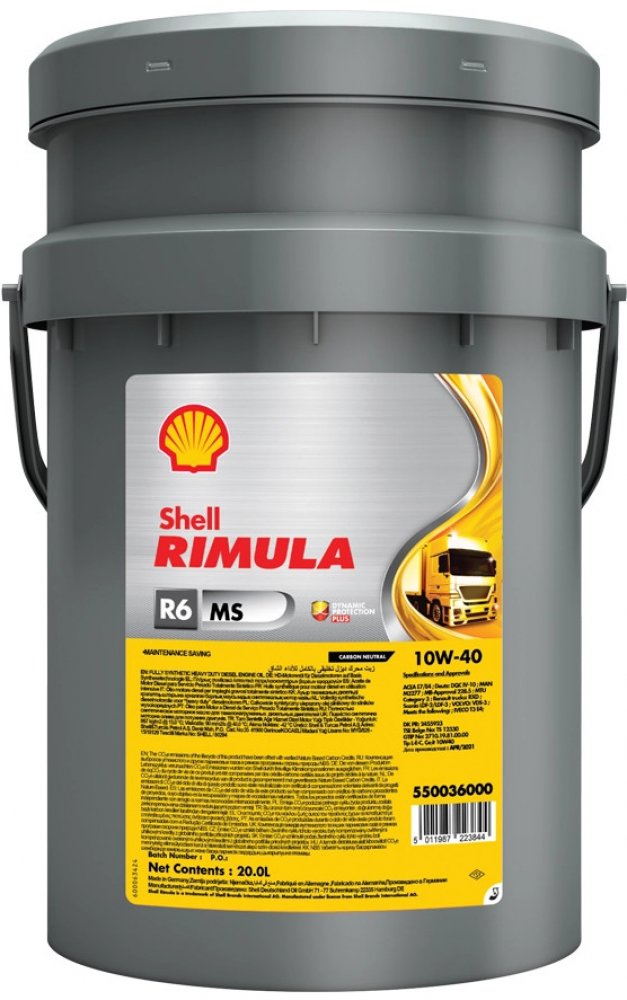 Shell Rimula R6 MS využívá základového oleje na bázi syntetické technologie v kombinaci s pokrokovým systémem přísad a představuje tak univerzální technologii oleje, která se přizpůsobuje a chrání rozsáhlou řadu typů a aplikací silničních vozidel. Uživatelům vozových parků nabízí vynikající příležitost, jak snižovat náklady na údržbu. Díky splnění specifikací vyžadovaných po olejích určených pro prodloužené výměnné intervaly, které stanovují mnozí výrobci motorů, olej Shell Rimula R6 M umožňuje využít řešení s jedním olejem pro vozové parky skládající se ze smíšených značek vozidel a technologií motorů včetně Euro 2, 3 a některých motorů Euro 4. Ve srovnání s konvenčními oleji viskozitní třídy SAE 15W-40 Shell Rimula R6 M může také přispět ke snížení spotřeby paliva.