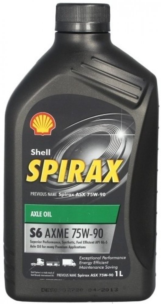 Shell Spirax S6 AXME 75W-90 je vysokotlaký olej s obsahem speciálních EP aditiv a je určen především pro nápravové diferenciály a rozvodovky osobních a nákladních automobilů, pro vysoce zatížené koncové převody a rovněž pro nesynchronizované převodovky vozidel. Díky své jedinečné formulaci umožňuje maximalizovat výměnné intervaly.