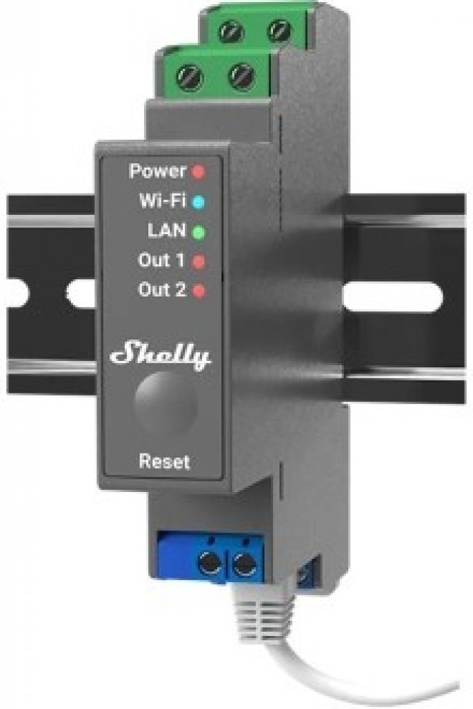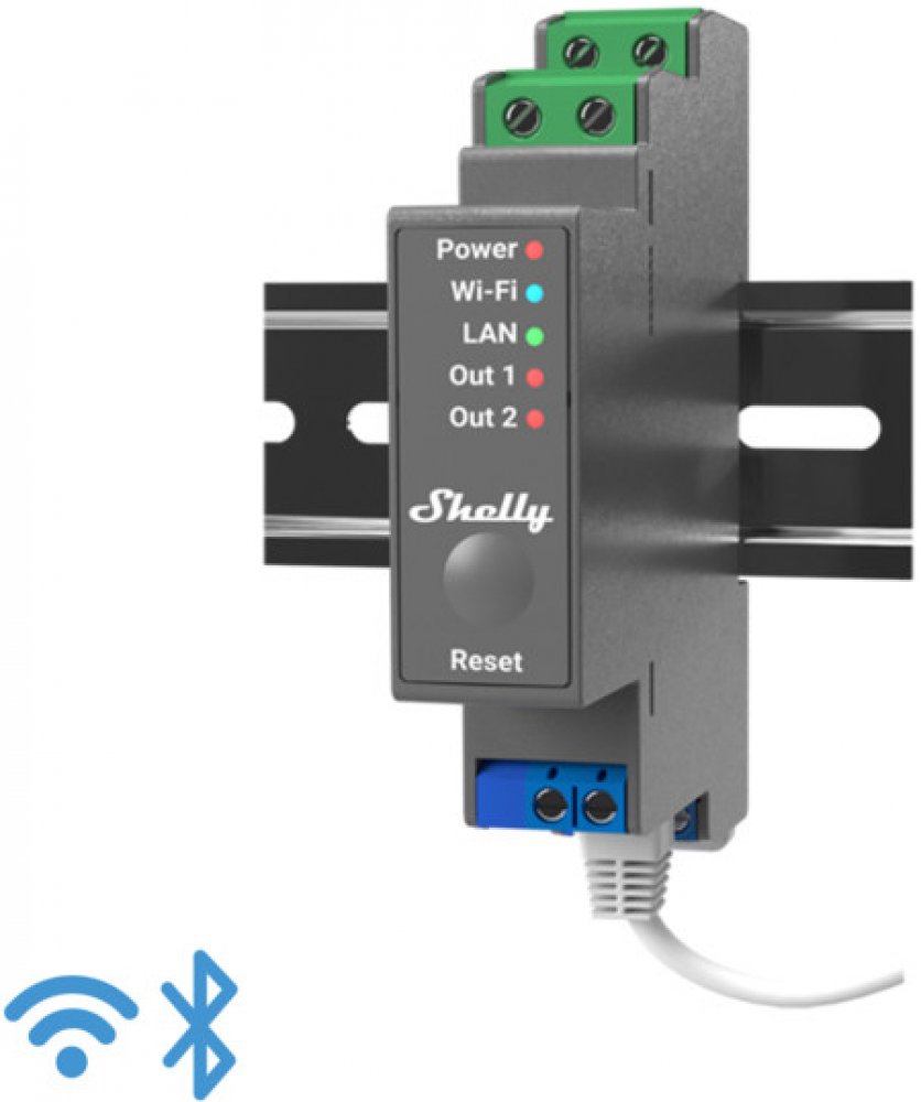 Shelly Pro 2 v.1 je pokročilý dvoukanálový modul na lištu DIN s bezpotenciálovými kontakty a plnou flexibilitou konfigurace - podporuje kabelovou síť LAN, Wi-Fi a Bluetooth. Ideální pro inteligentní řízení osvětlení, elektrických spotřebičů, topných zón v domácnostech, hotelech, kancelář...