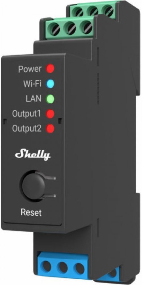 Shelly Pro 2 v.1 je pokročilý dvoukanálový modul na lištu DIN s bezpotenciálovými kontakty a plnou flexibilitou konfigurace - podporuje kabelovou síť LAN, Wi-Fi a Bluetooth. Ideální pro inteligentní řízení osvětlení, elektrických spotřebičů, topných zón v domácnostech, hotelech, kancelářích a průmyslových objektech.