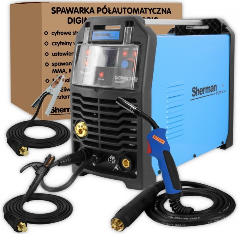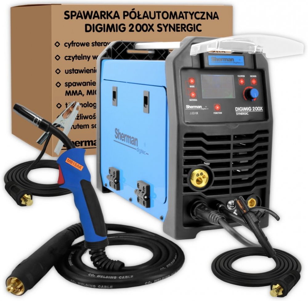 Svářečka DIGIMIG 200X Synergic Sherman je inovativní zařízení pro ruční svařování oceli a neželezných kovů metodami MIG/MAG, MMA (elektroda) a Lift TIG (škrtem).
