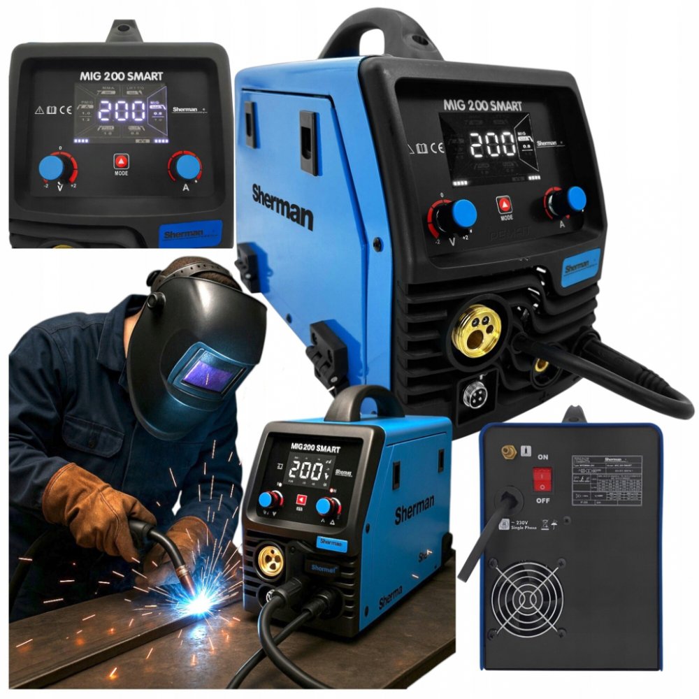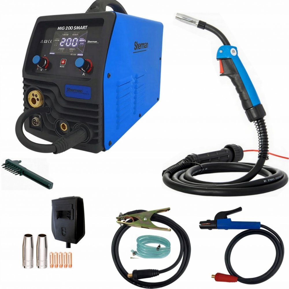 Svářečka MIG 200 SMART synergy se používá k ručnímu svařování oceli. Jedná se o velmi snadno použitelné zařízení umožňující svařování metodami MMA (obalenou elektrodou), TIG Lift a MIG/MAG v synergickém režimu. Díky změně polarity přístroj umožňuje svařování metodou MIG/MAG jak standardními ochrannými dráty, tak i práškovými dráty.Svářečka umožňuje připojení hořáku typu Spool Gun s namontovaným miniaturním podavačem drátu a cívkou ocelového nebo barevného drátu D100. Vestavěný synergický obvod umožňuje méně zkušeným uživatelům volit parametry svařováníZařízení je vyrobeno technologií IGBT umožňující výrazné snížení hmotnosti a rozměrů svářečky a zvýšení produktivity při současném snížení spotřeby energie.Svářečka je vhodná pro použití v uzavřených nebo krytých prostorách, které nejsou vystaveny přímému působení povětrnostních vlivů.